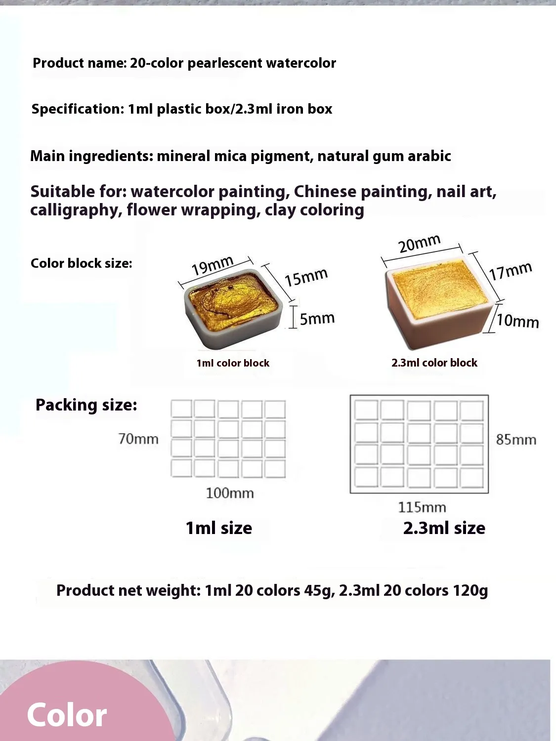 Pearlescent Watercolor Concentrated Painting Glitter Solid