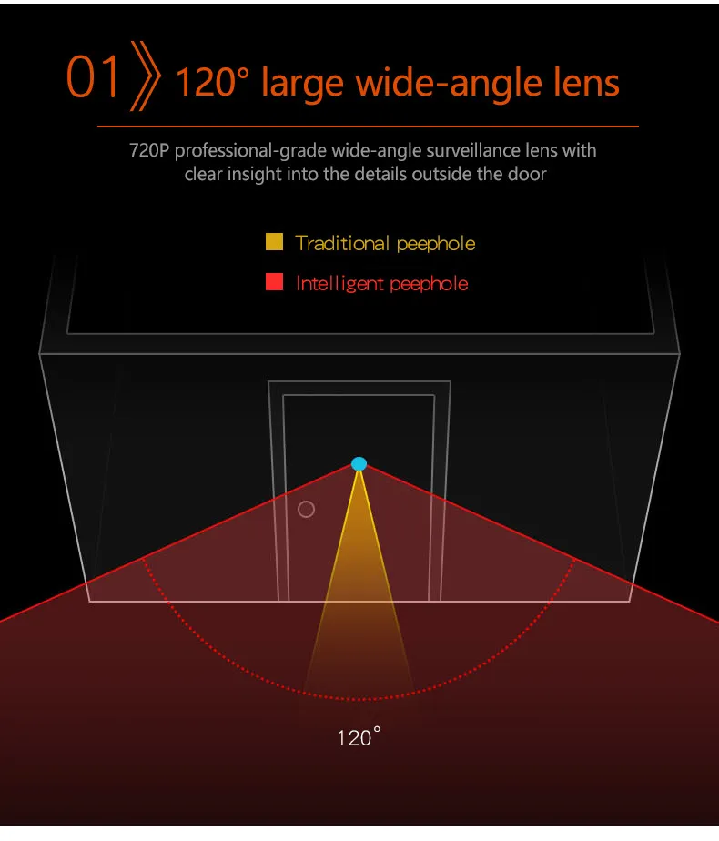 The peephole camera features a high-definition lens that captures sharp images and videos of visitors outside your door. With motion detection, infrared night vision, and wide-angle viewing, it ensures complete visibility day and night. Some models support Wi-Fi connectivity, allowing remote access via your smartphone — so you can see and talk to visitors even when you're not at home.
