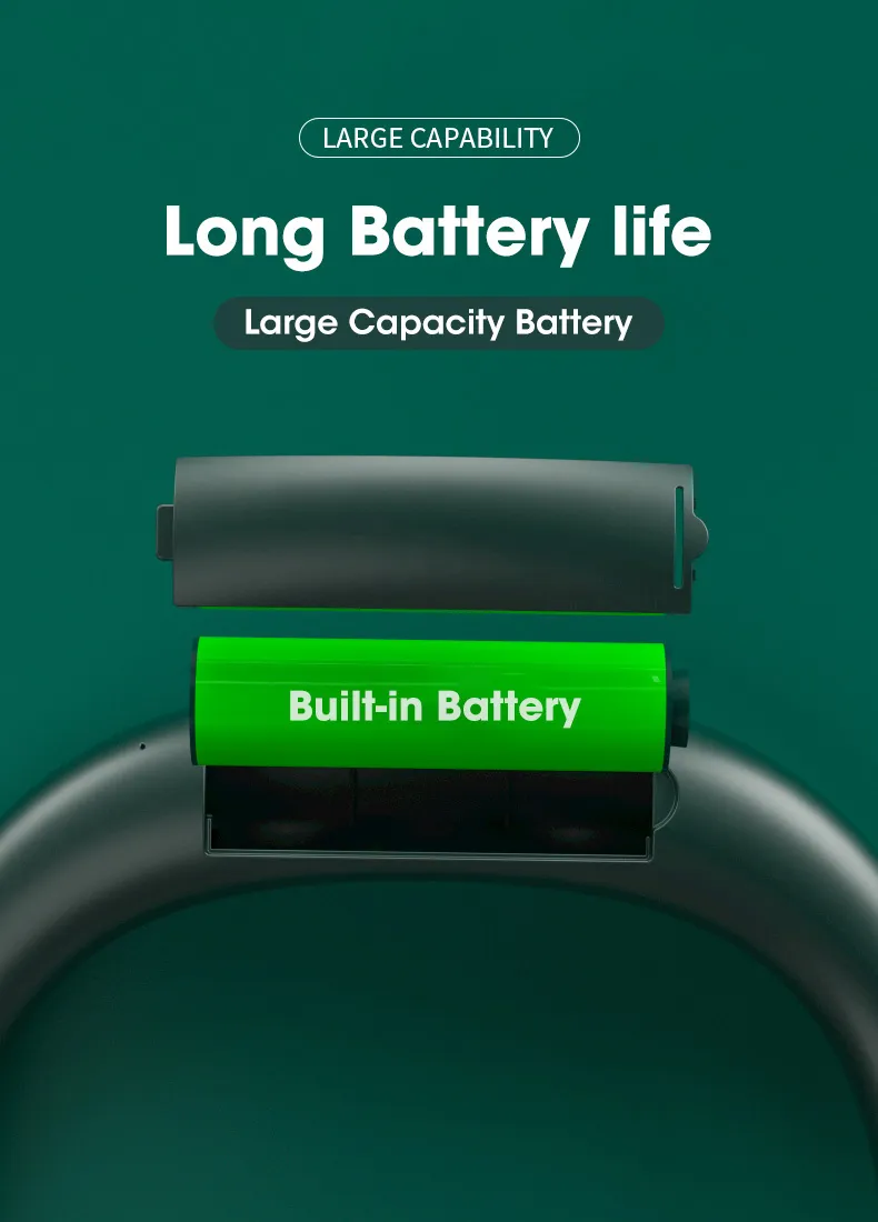 Long Battery Life: The fan is powered by a long-lasting rechargeable battery, ensuring you can stay cool for hours on end