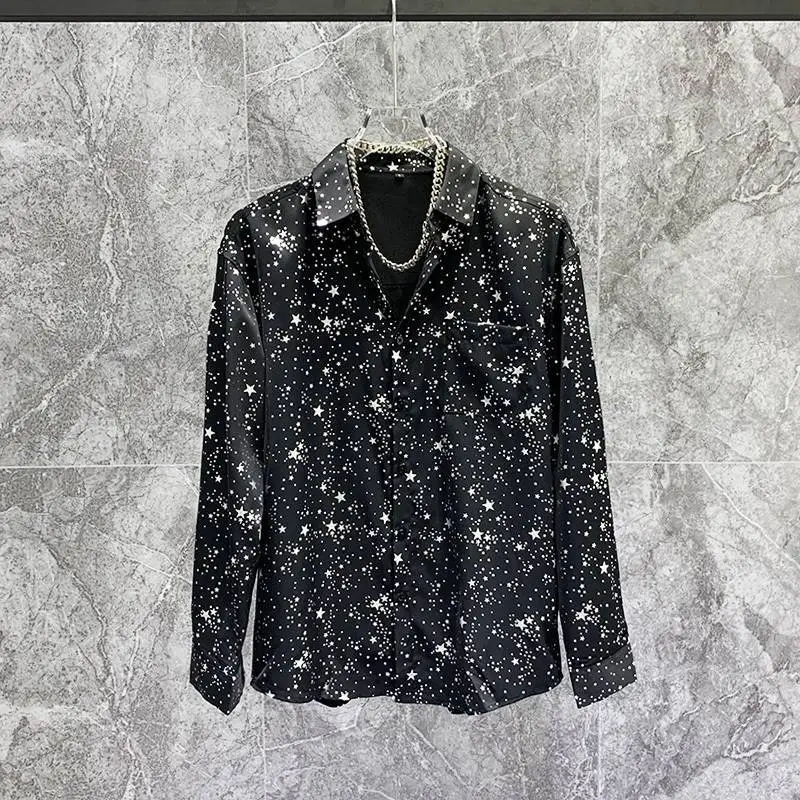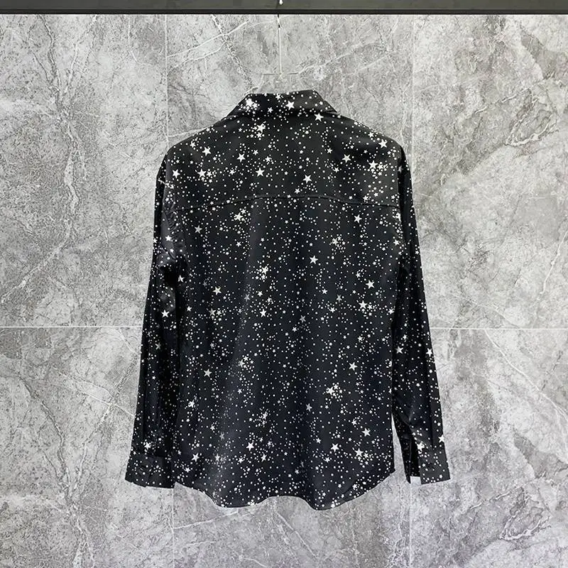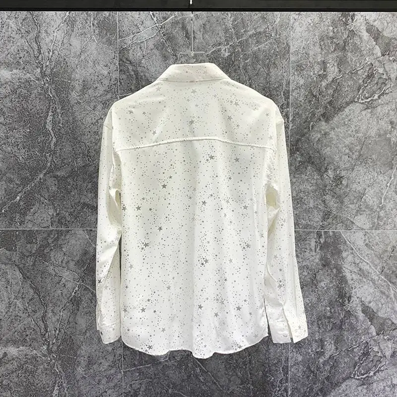 - Starry Bronzing Design: Featuring a captivating starry bronzing effect, this shirt adds a touch of celestial charm and sophistication to any outfit.