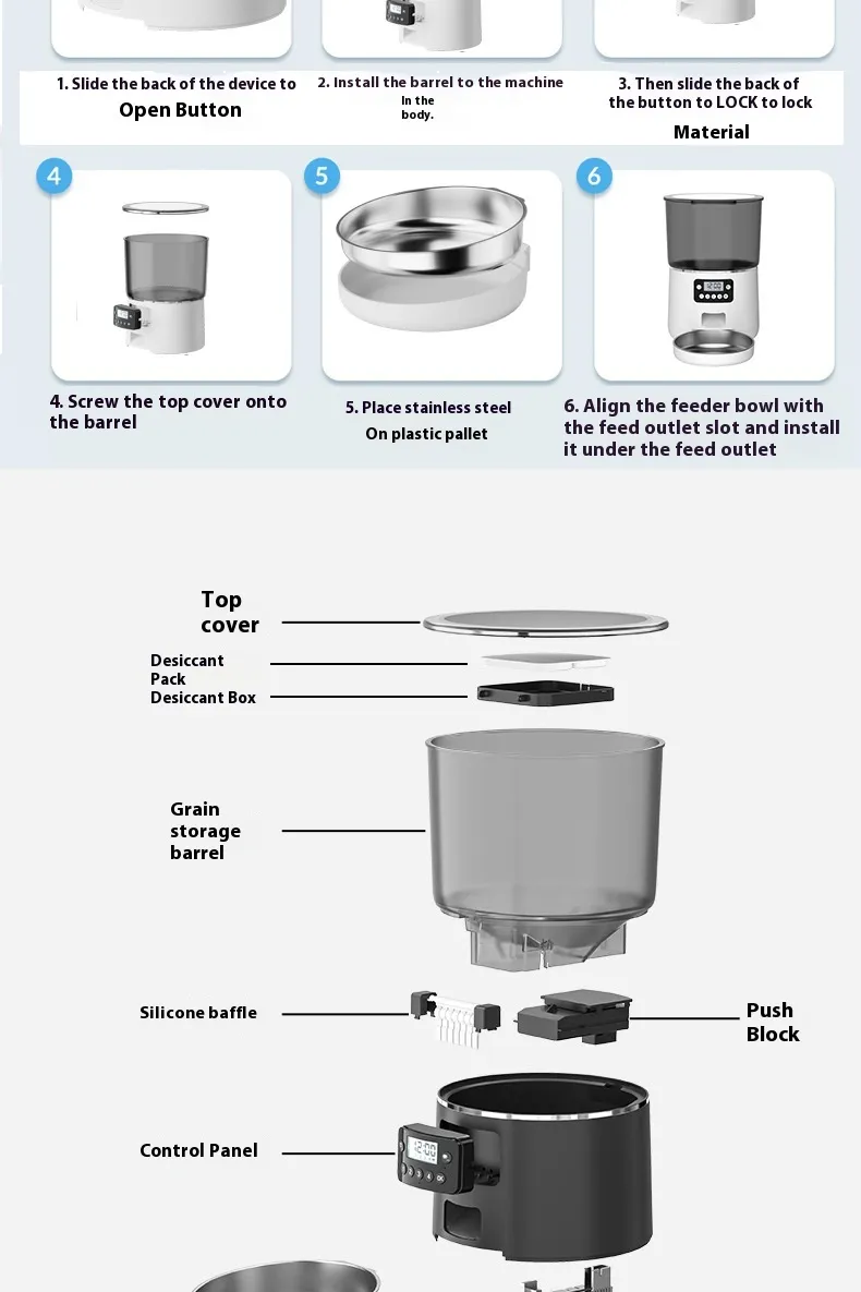 Built with a sealed food storage container, it keeps dry food fresh and crunchy, and the dual power supply (USB and battery backup) ensures continuous operation even during power outages. Plus, with the integrated voice recording feature, you can leave a comforting message that plays during mealtime—so your pet never feels alone.