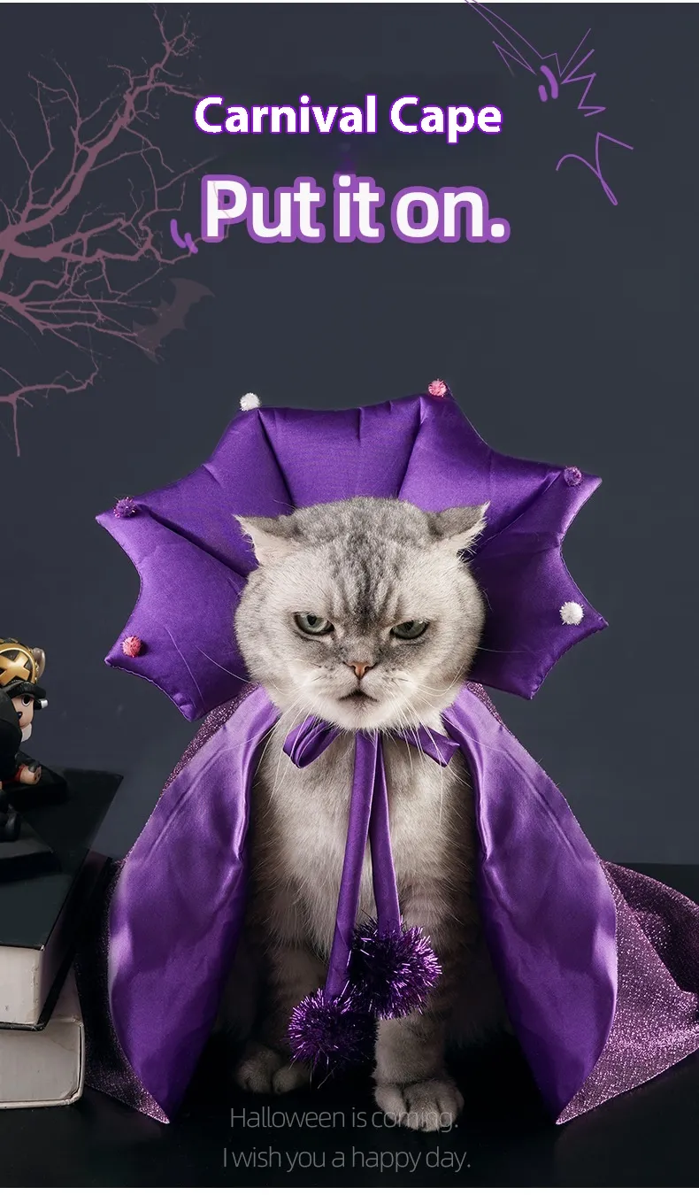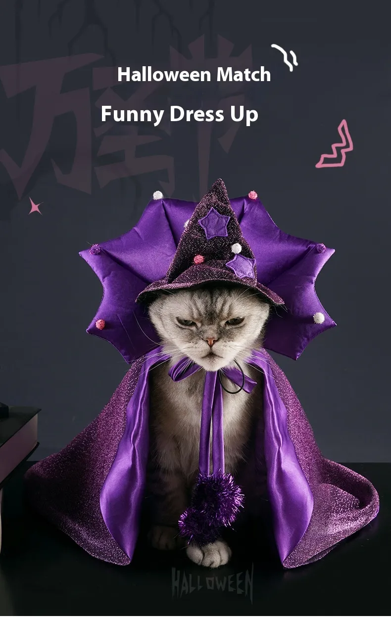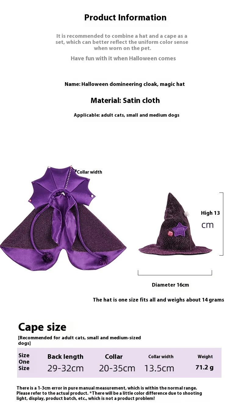 Halloween, costume parties, or playful photoshoots, this set includes a whimsical cloak and a matching hat that will make your pet look