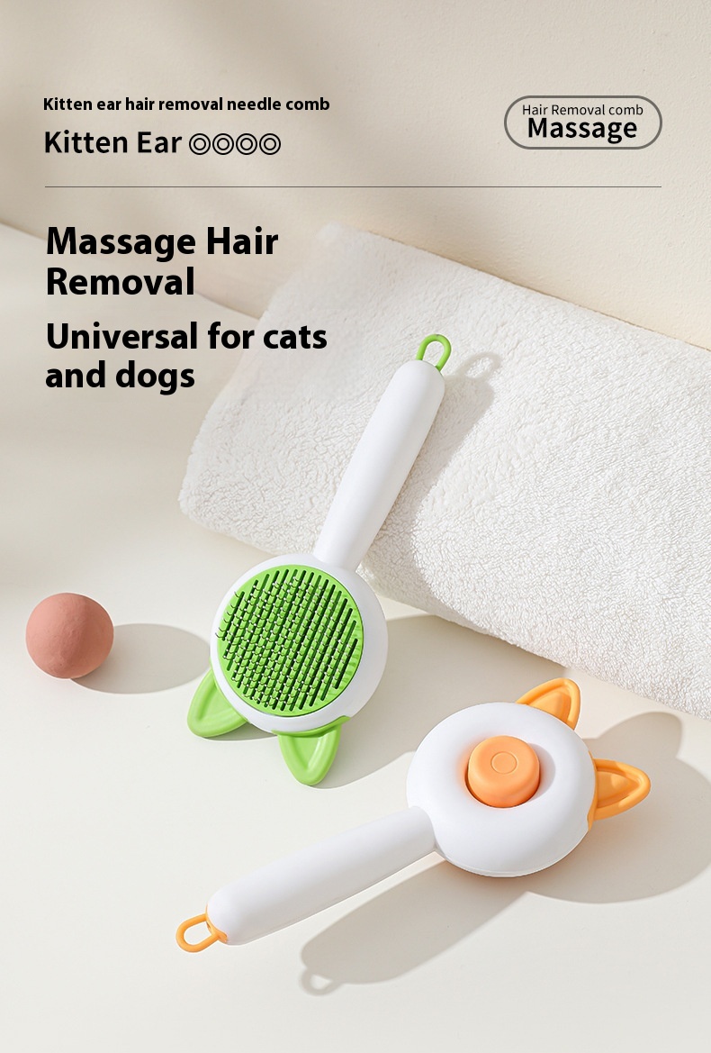 Pet Dog and Cat Self-Cleaning Grooming Brush - Hair Remover Dematting Comb with Cat Ear Design