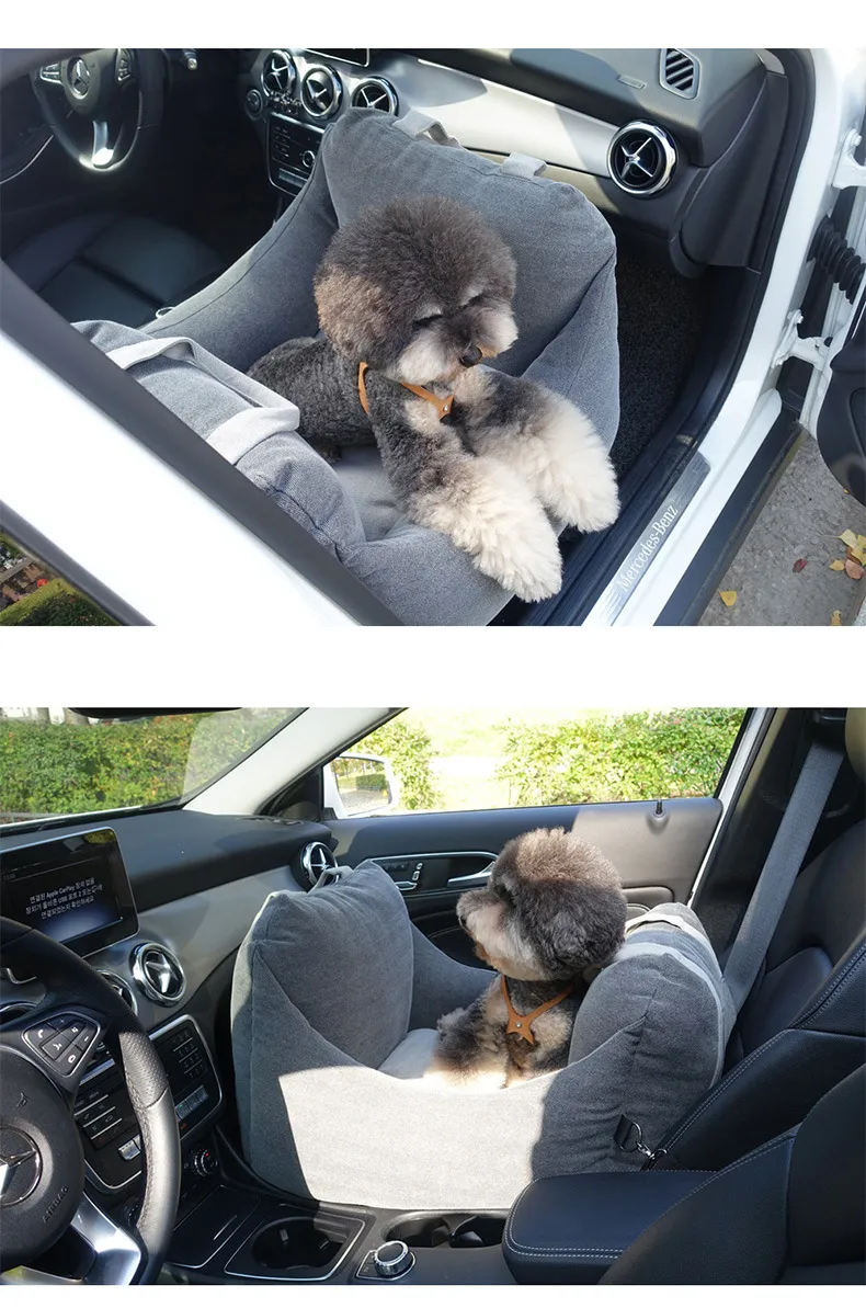 Safety is a priority with the Pet Dog Car Carrier Seat. The secure fastening system and non-slip base ensure that the seat stays in place, preventing unnecessary movement and ensuring that your dog remains secure during the ride. With this car seat, your pet is safe from distractions while you drive.