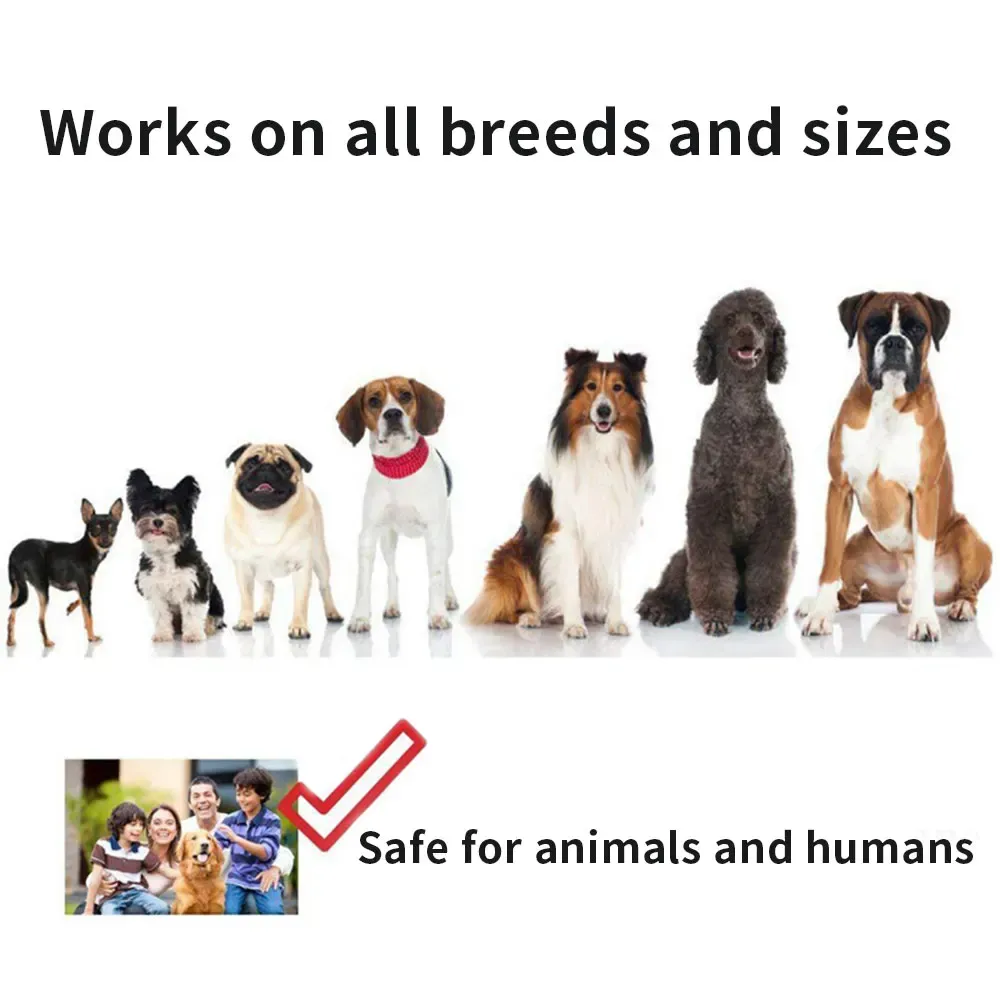 The ultrasonic sound emitted by the device is inaudible to humans, ensuring that it does not cause discomfort to people nearby. It is also safe for dogs, as it does not involve any physical contact or harmful substances.