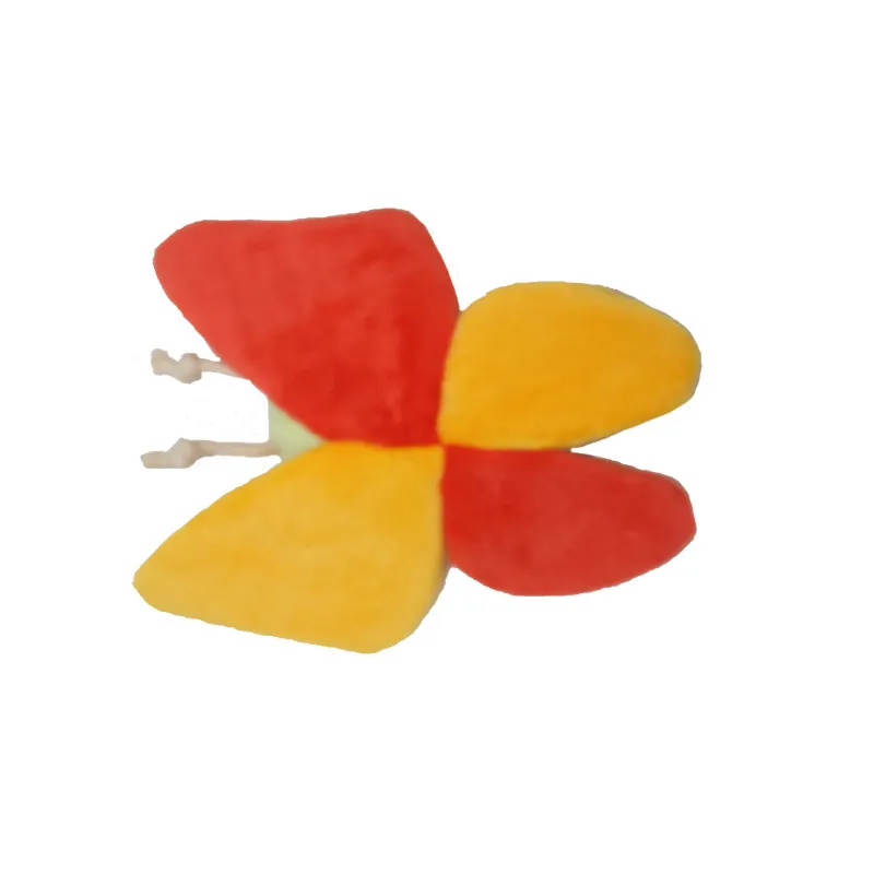The Pet Plush Toy is designed in the shape of a cute and colorful butterfly with soft, fluffy fabric that’s perfect for cuddling or holding. The design features vibrant colors and charming details that appeal to children and adults alike. The butterfly's wings are made of plush material, making it easy to hug, squeeze, or simply enjoy its softness.