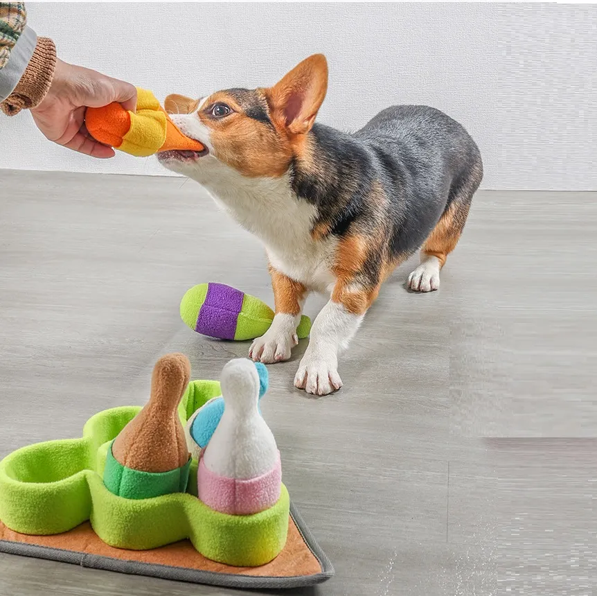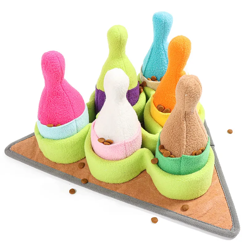 Introducing the Bowling Olfactory Pad Puzzle Decompression Toy, an innovative, scent-driven play mat designed to engage your dog’s natural sniffing instincts, provide mental stimulation, and reduce anxiety. This interactive puzzle encourages your furry friend to use their nose to find hidden treats, making playtime both fun and rewarding.