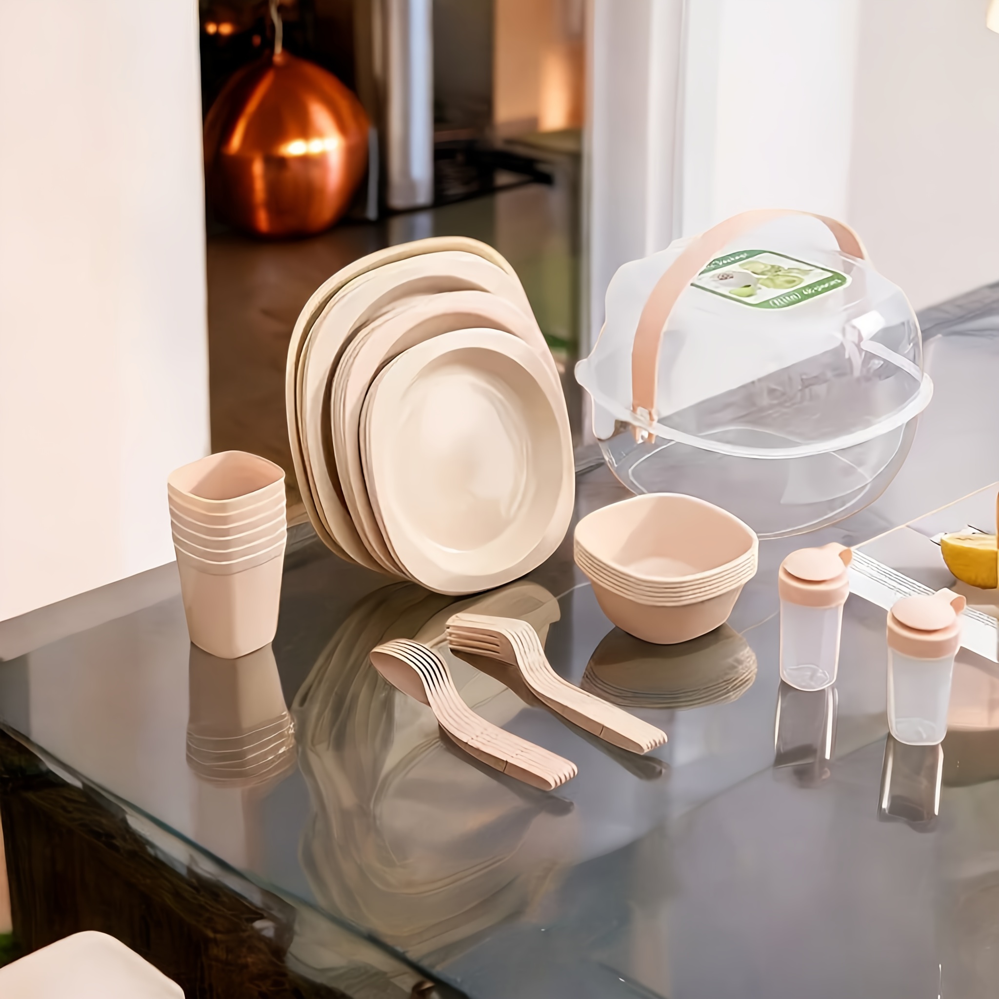 organize the pieces. This compact design ensures that you can take your dinner set on the go without any hassle.