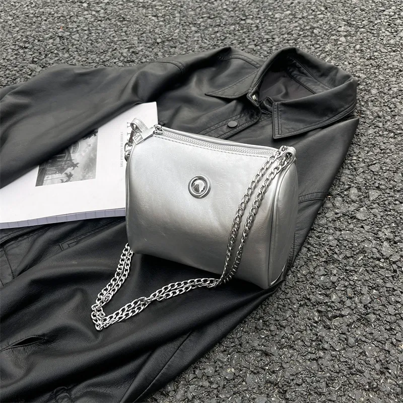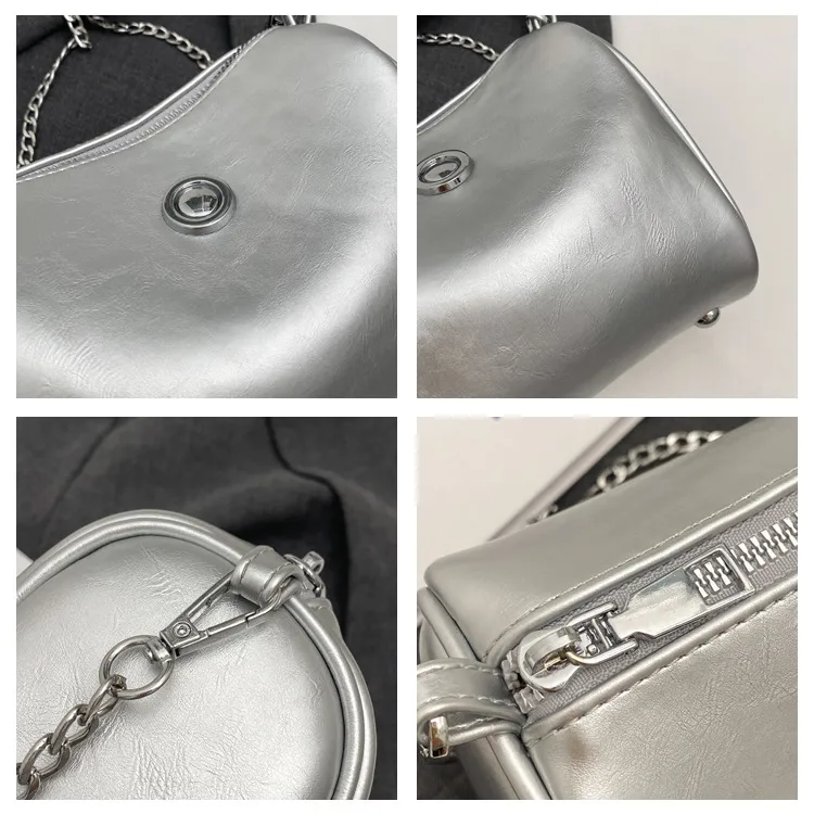 Pillow Oil Wax Leather Chain Crossbody Shoulder Bag