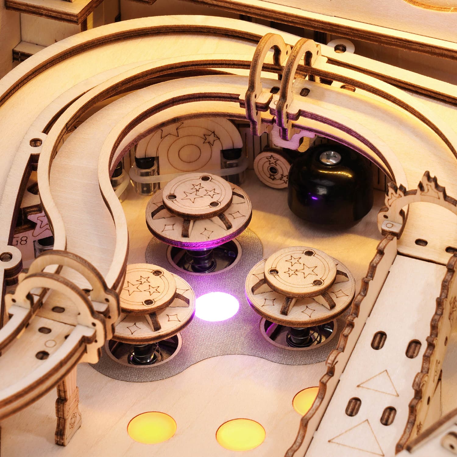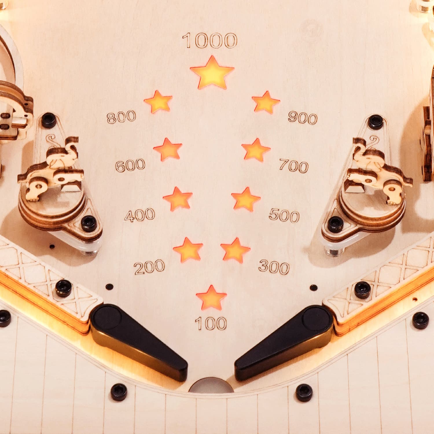 If you love classic pinball games, then get ready for the 3D Pinball Machine 3D wooden puzzle kit EG01! This is a vintage-style pinball game machine that will take you back to the good old days of the '90s. Challenge yourself by assembling all the pieces together and building your own pinball machine. With all the transmission model, live sound & light effects, electronic scoring, and other exquisite detail design, this ROKR 3D pinball puzzle will bring you so much fun playing on your own or interacting with family and friends. Try to survive as long as you can and score as many as possible!