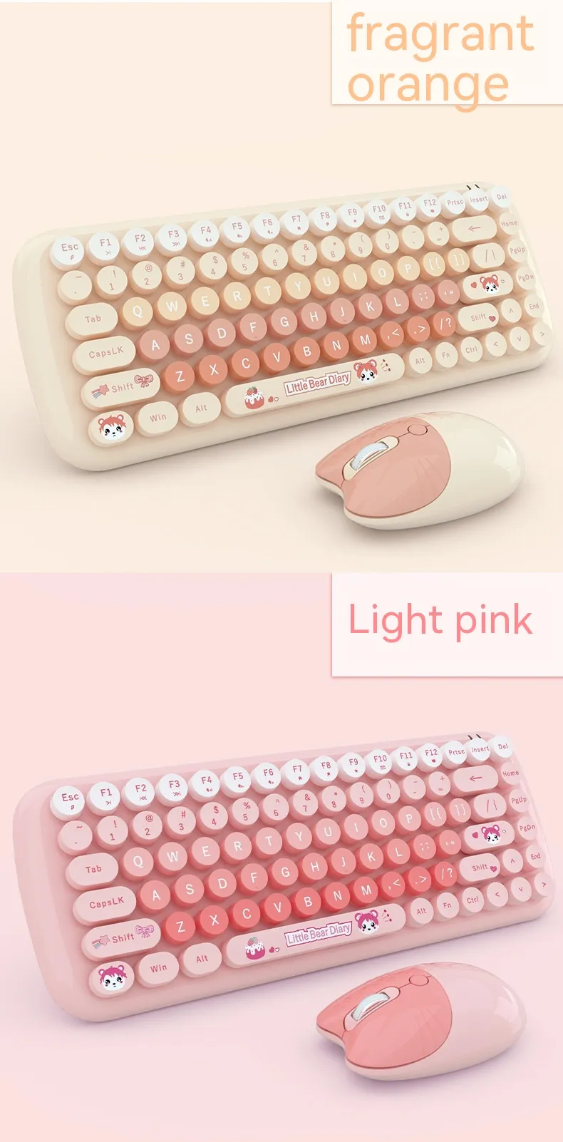 The Pink Mini Cute Cartoon Wireless Keyboard and Mouse Set is the perfect combination of style, comfort, and functionality. Whether you're using it for work, study, or casual use, this set provides a fun, reliable, and ergonomic solution for all your computing needs. Its cute design, compact size, and wireless convenience make it the ideal choice for anyone looking to add a touch of personality to their workspace while enjoying the benefits of modern technology.