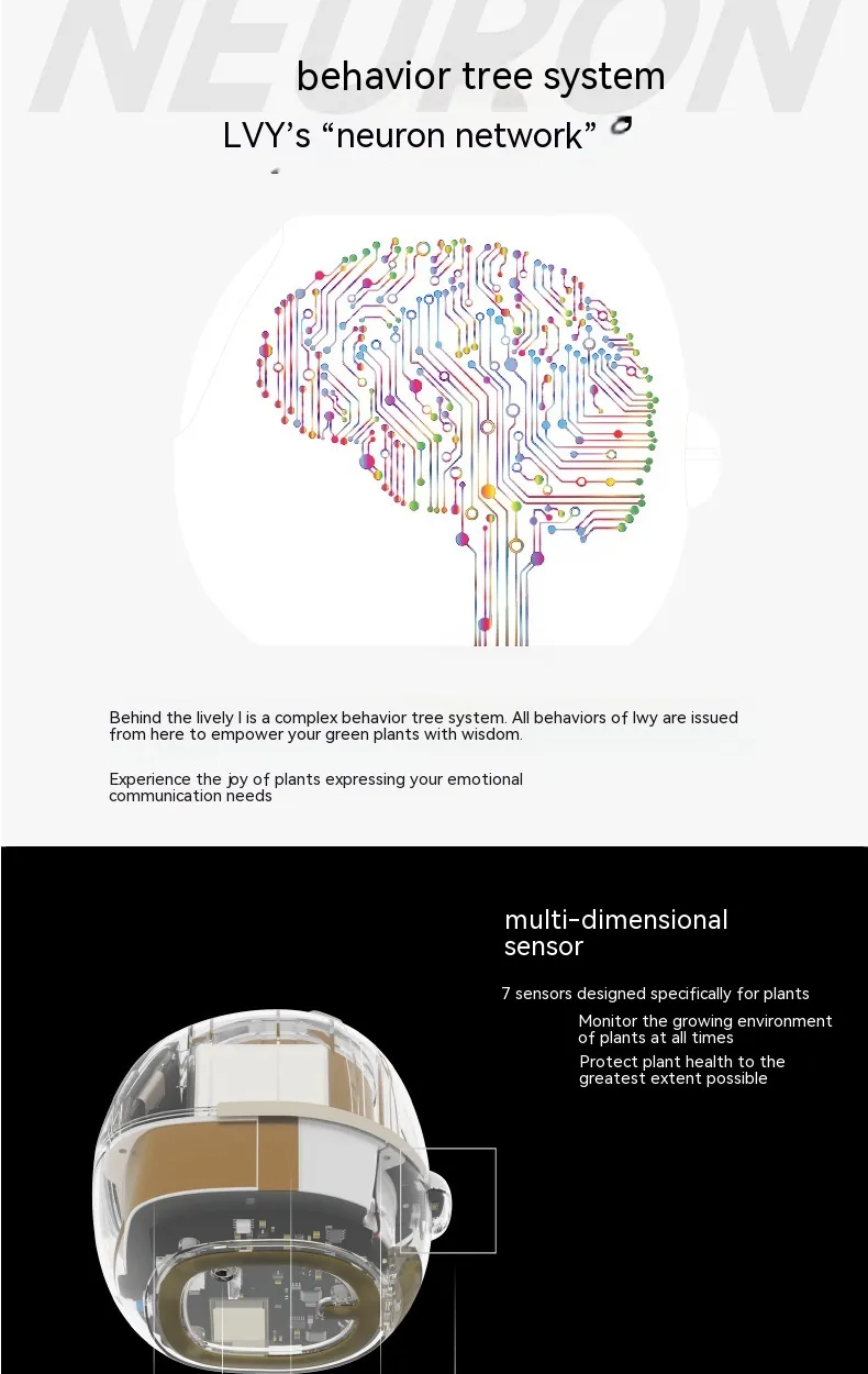 Planter with 49 Expressions, 7 Sensors, and AI for Easy Plant Care.