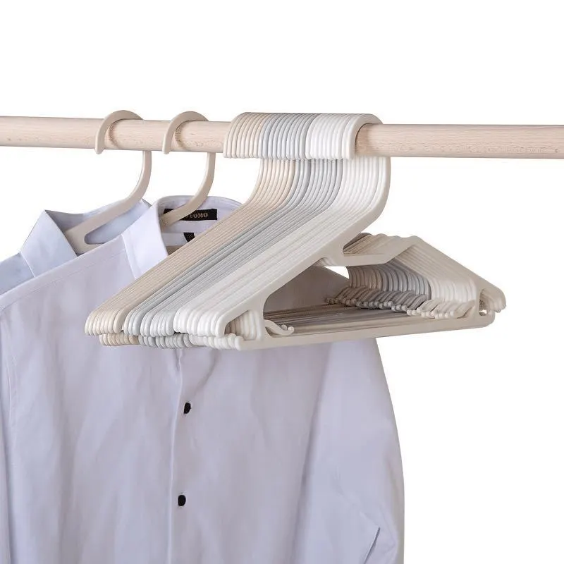 Crafted from high-quality, lightweight plastic, these hangers are strong enough to hold a variety of clothing items, from delicate tops to heavy jackets. The slim, space-saving design maximizes storage space while maintaining a clean and organized look. The smooth finish prevents clothes from slipping, while integrated hooks make it easy to hang accessories like scarves or ties alongside your outfits.