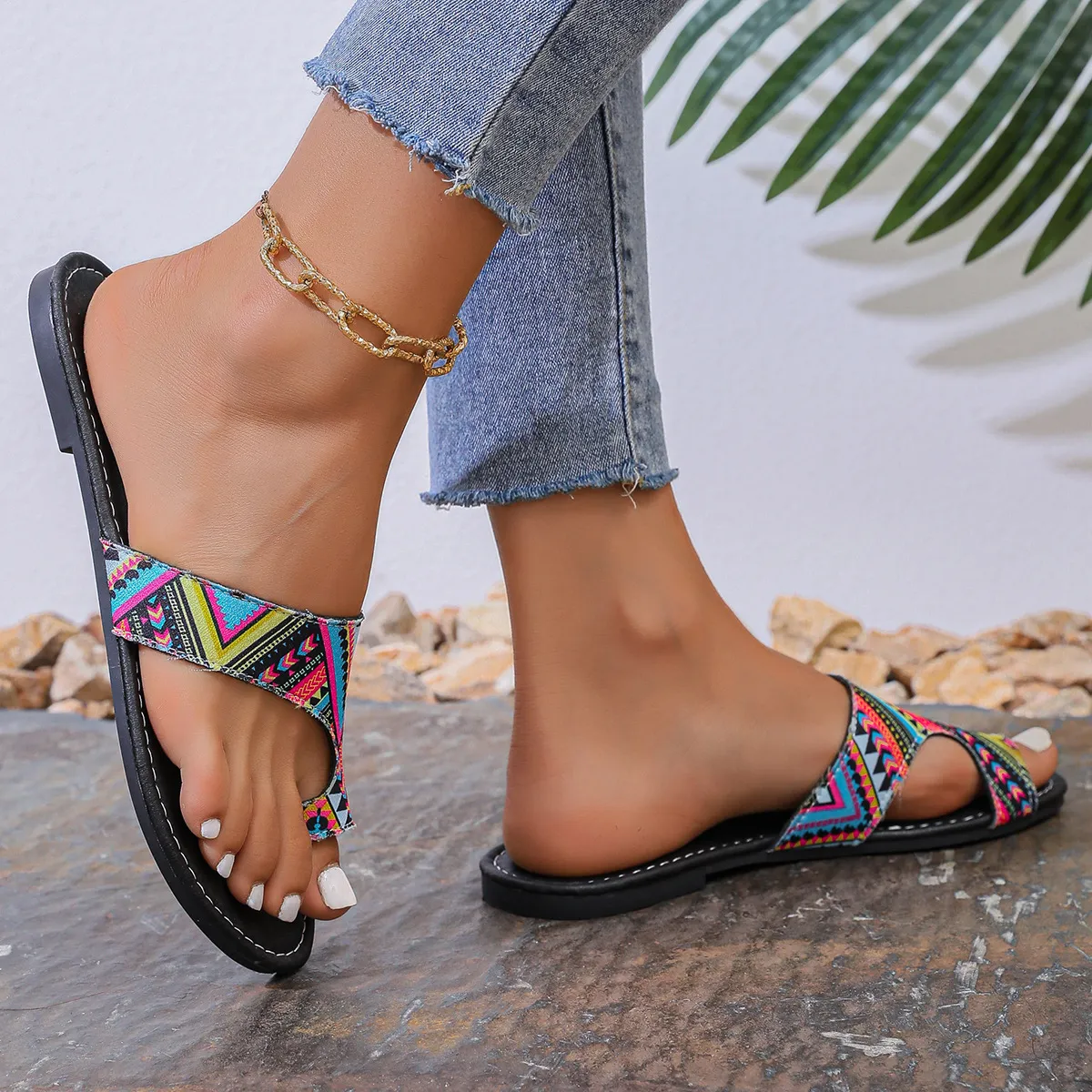 The ethnic-inspired prints bring a unique and stylish element to your summer footwear collection, pairing well with casual and beachwear.