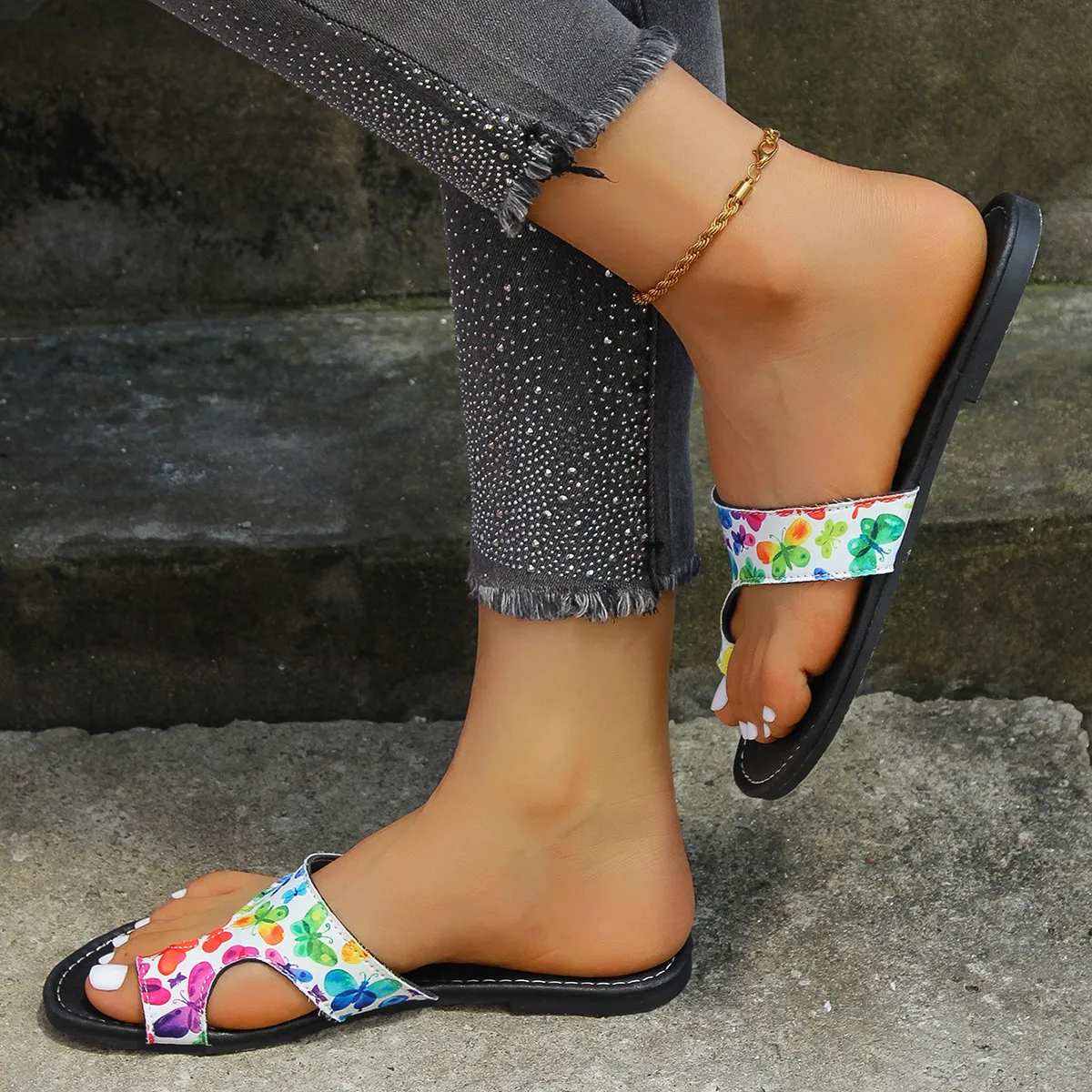 Plus Size Printed Ethnic Style Casual Toe Covering Flip-flops