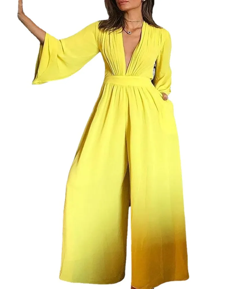 Our Plus Size Yellow Jumpsuit is incredibly versatile and can be dressed up or down depending on the occasion. Pair it with sandals for a relaxed, daytime look, or dress it up with heels and accessories for a more formal or evening event. The wide leg design makes it perfect for pairing with a belt for a more defined waistline, or you can wear it loose for a breezy, laid-back style. The one-piece design provides effortless elegance with minimal effort, allowing you to look stylish and put-together for any event.