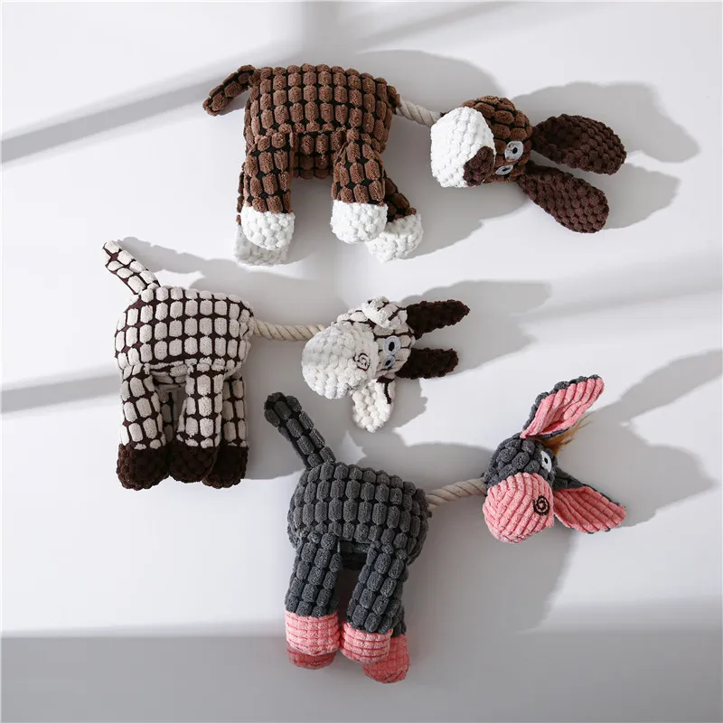 with various textures and sounds. Crinkle paper and tug-activated squeakers entice your pup to play.