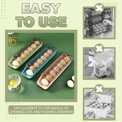 Automatic sliding design, eggs will automatically roll down for easy access. Say goodbye to the hassle of opening the lid and pushing the drawer.