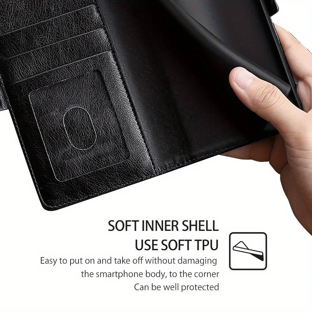 Product Description 1.Material:High Quality Faux Leather + Silicone Soft TPU Back Cover. 2.With wallet and card slot function. 3.Design with