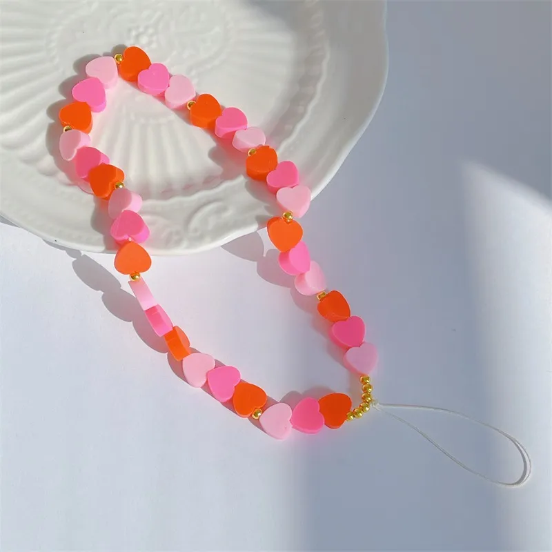 Polymer Clay Love Gradient Color Heart Pattern Mobile Phone Lanyard