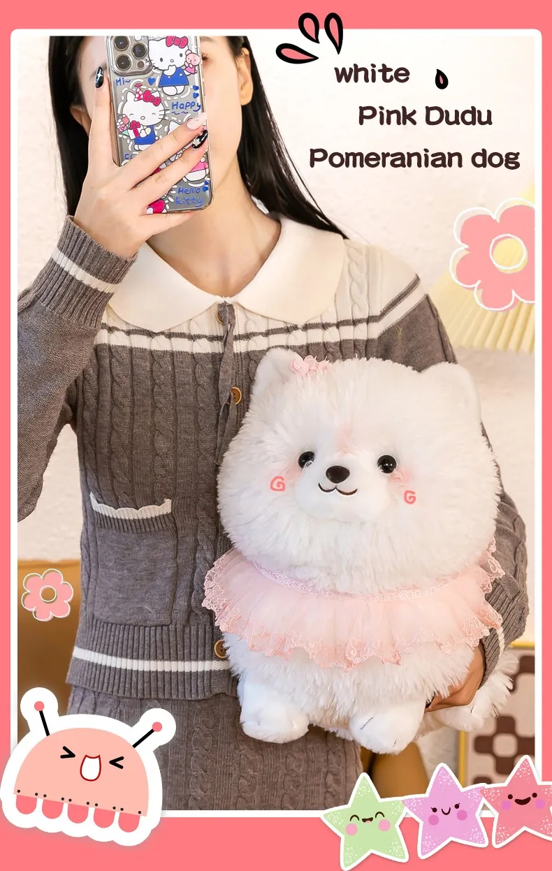 From the fluffy tail to the cheerful face and perky ears, the plush toy captures the playful personality and appearance of a real Pomeranian. It’s a must-have for dog lovers and plush collectors alike.