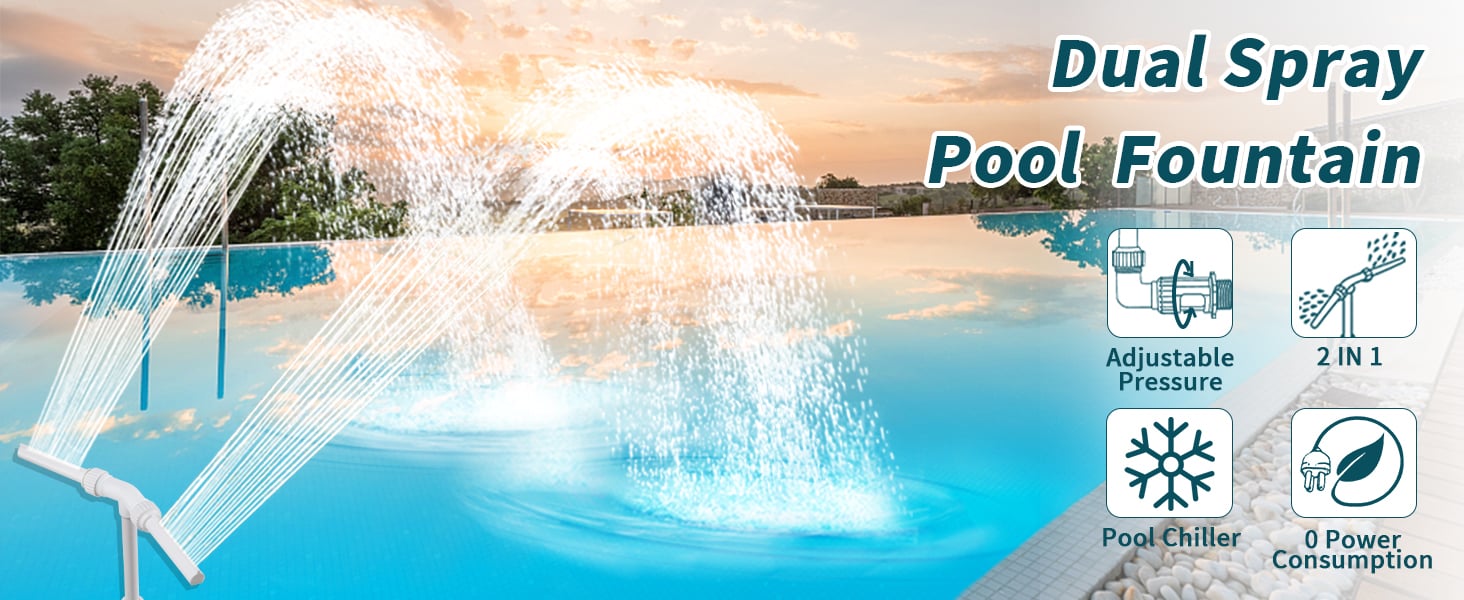 Double the Fun, Double the Splash! Doubling the water volume splashed into the air for twice the fun in your pool.