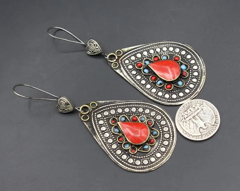 Popular Water Drop Pendant Inlaid Ruby Metal Alloy Earrings