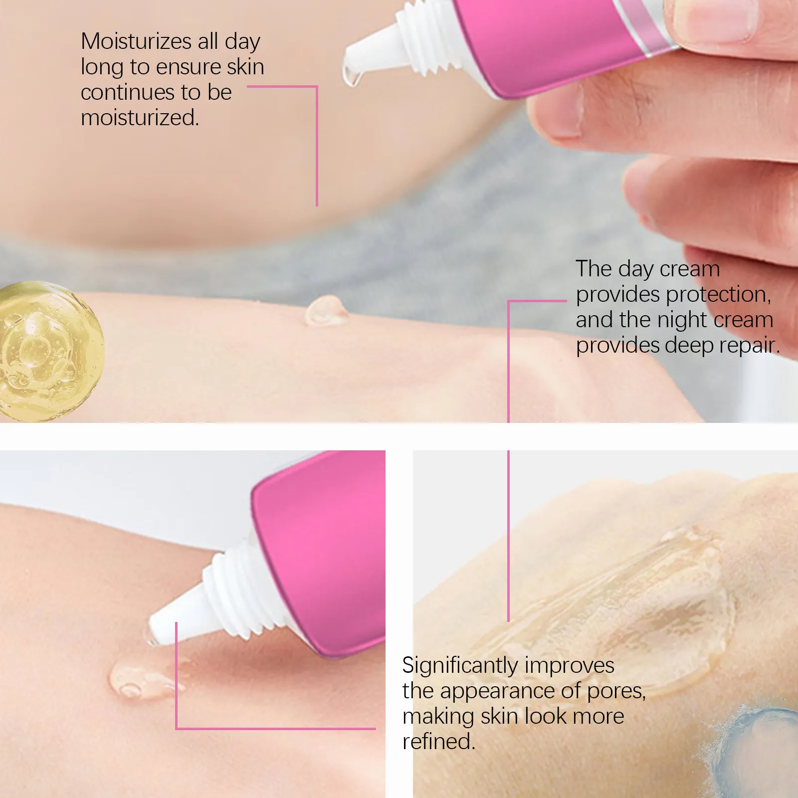 The cream helps tighten and refine the pores, reducing their visibility over time. It works to maintain clear pores by preventing new blockages, giving the skin a smoother and more even texture.