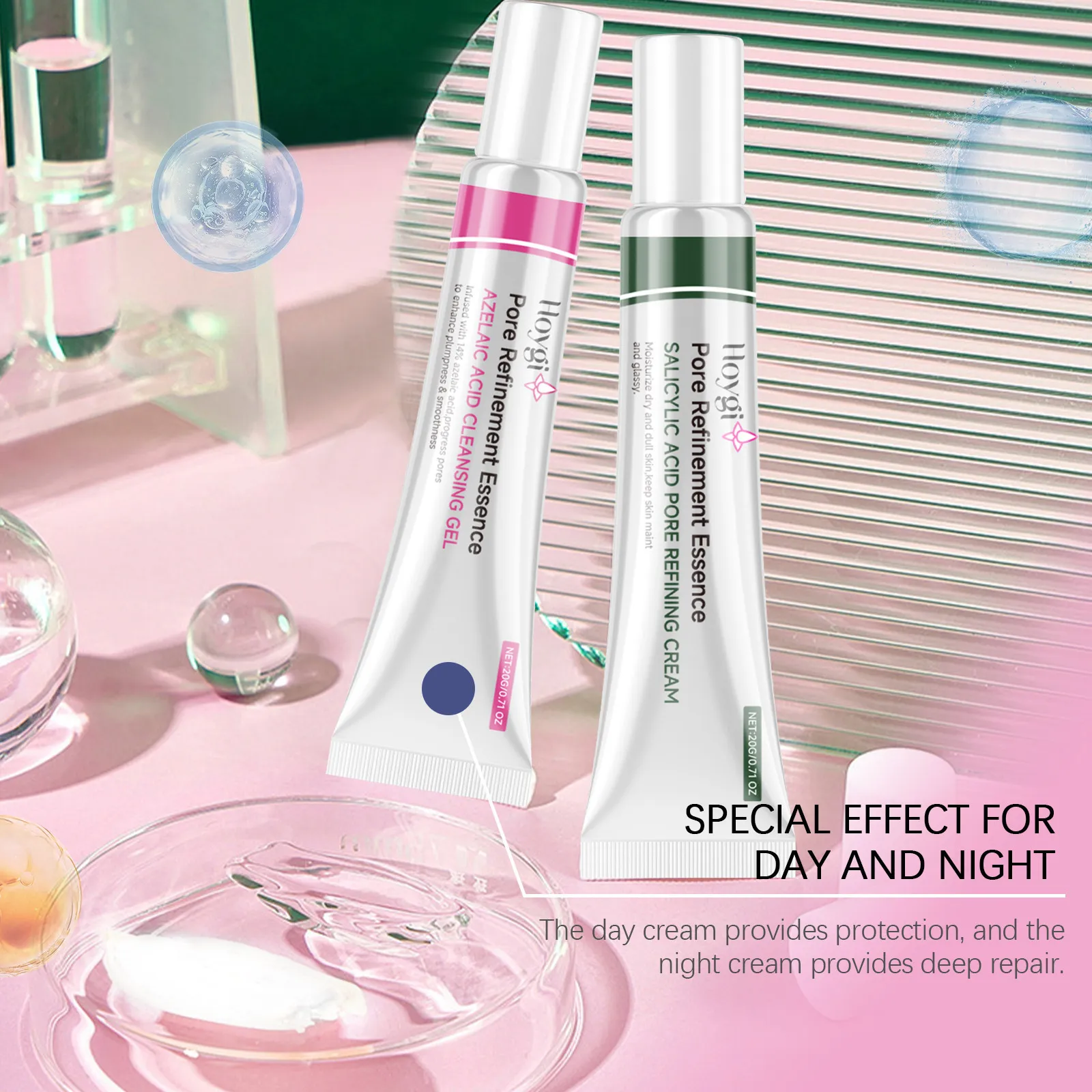 Ingredients: azelaic acid Cleansing Gel: water, azelaic acid, hyaluronic acid, tea leaf extract, glycerosalicylic acid pore fine cream:
