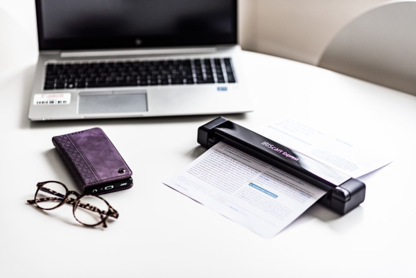 The IRIScan Express 4 is a portable USB sheetfed scanner. So you simply need to insert the page you want to scan into the device, and it will come out scanned in a few seconds.
