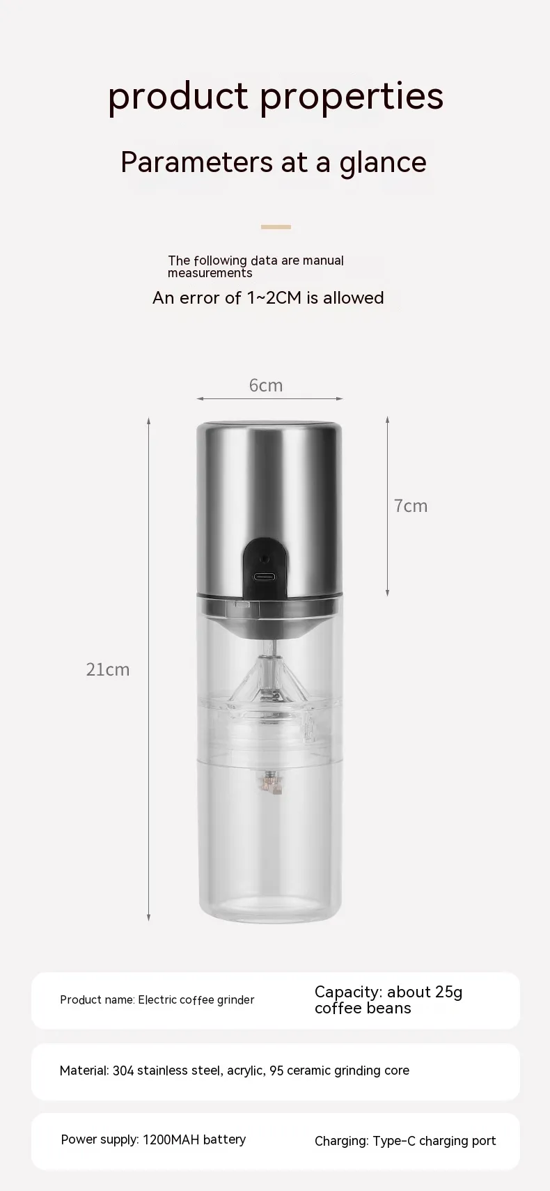 The Portable Coffee Machine with Hand-Made Coffee Bean Grinder is the ultimate companion for coffee enthusiasts who value fresh, flavorful brews. Designed specifically for one-person households, this portable device combines a coffee machine and grinder into one sleek unit. Whether at home or on the go, you can enjoy the rich aroma and taste of freshly brewed coffee with minimal effort.