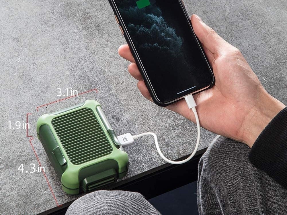 - Portable Waist Fan with 24H Long Working Time: Equipped with a 10000mAh battery, this outdoor portable waist fan offers up to 24 hours of continuous cooling. Whether at work or enjoying outdoor activities, you can stay refreshed throughout the day without worrying about running out of power. The hands-free design of the mini fan allows for convenient use in outdoor activities. The portable fan also supplies an emergency power bank for your phones when you are outside.
