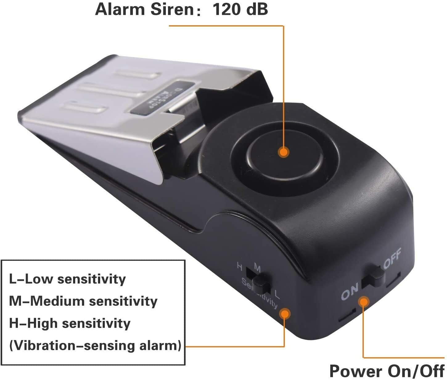 - Dual Protection 2: the door stopper alarm with 120DB siren, Once someone opens the door, the door stopper alarm will go off in the first place, they will scare away bad guys and help wake you and give you time to find help.which is a great helper for you when you are on business and travel or live alone.