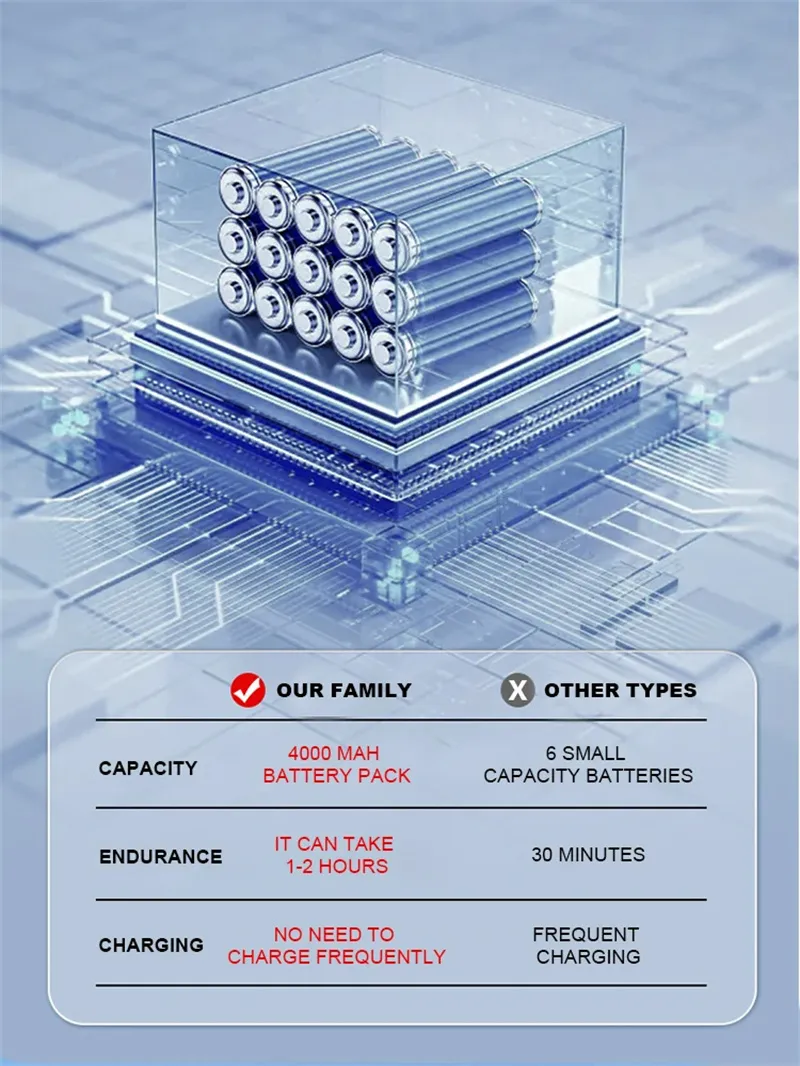 Long Endurance: Built-in 5000mAh large-capacity battery, low power consumption, more than 1 hour for high water flows