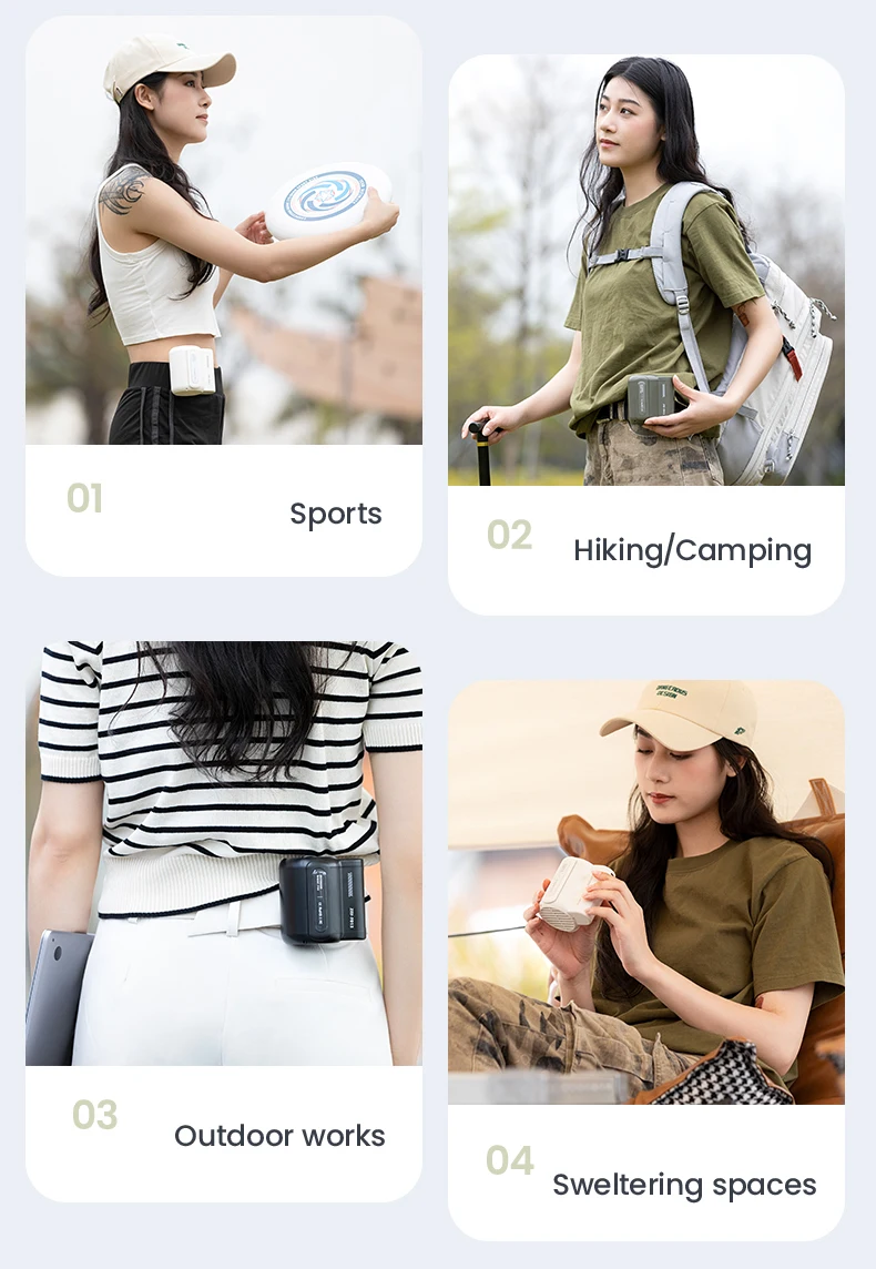 Our wearable fan as an indispensable companion for summer. Great noise control when you enjoy the-cool!