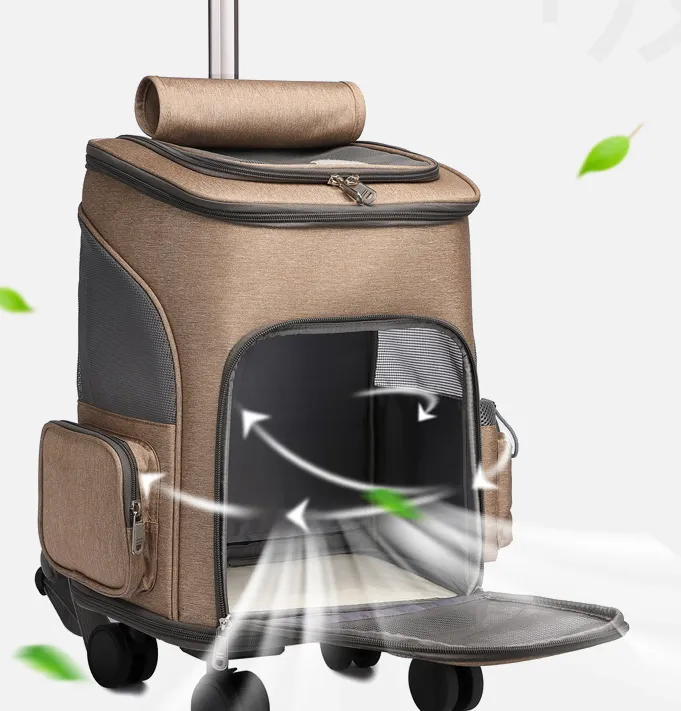 Portable Folding Pet Trolley Backpack with Universal Wheels for Traveling