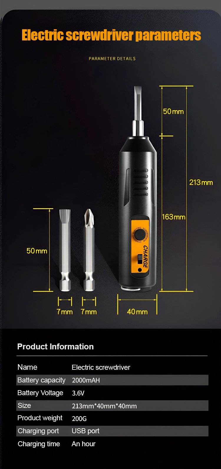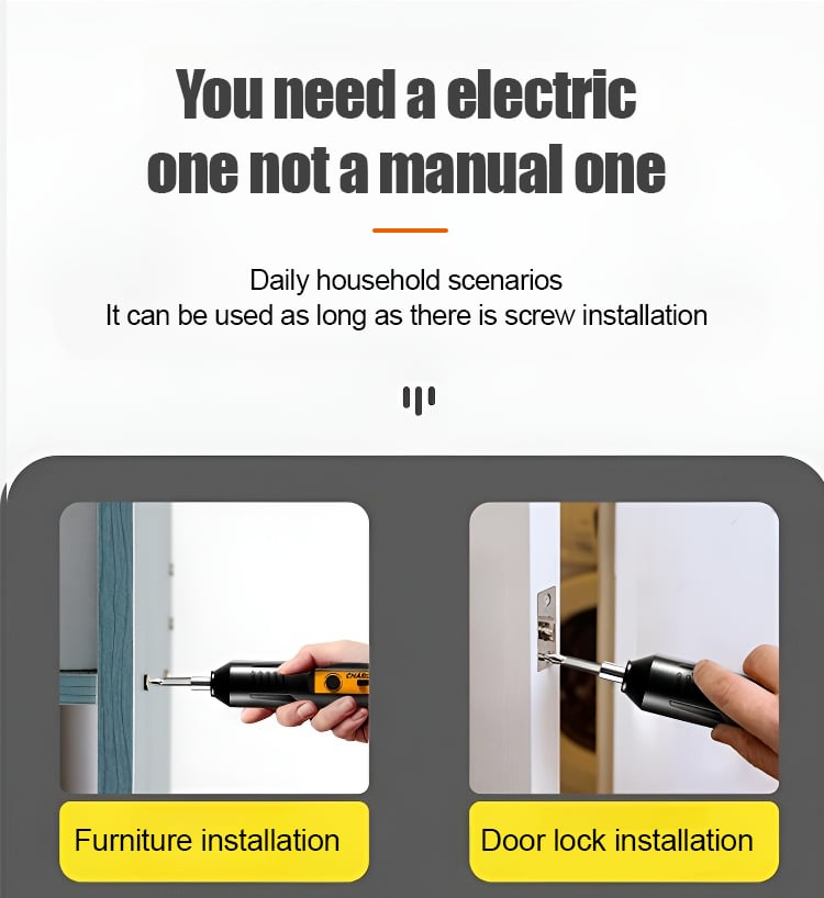 Elevate your DIY toolkit with our versatile Electric Screwdriver Set, perfect for a wide range of home improvement tasks. From furniture assembly to household maintenance, our set is engineered to meet all your needs with ease and precision. Invest in our Portable Tools today and transform your home improvement projects into simple, enjoyable tasks.