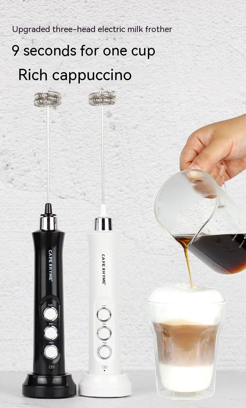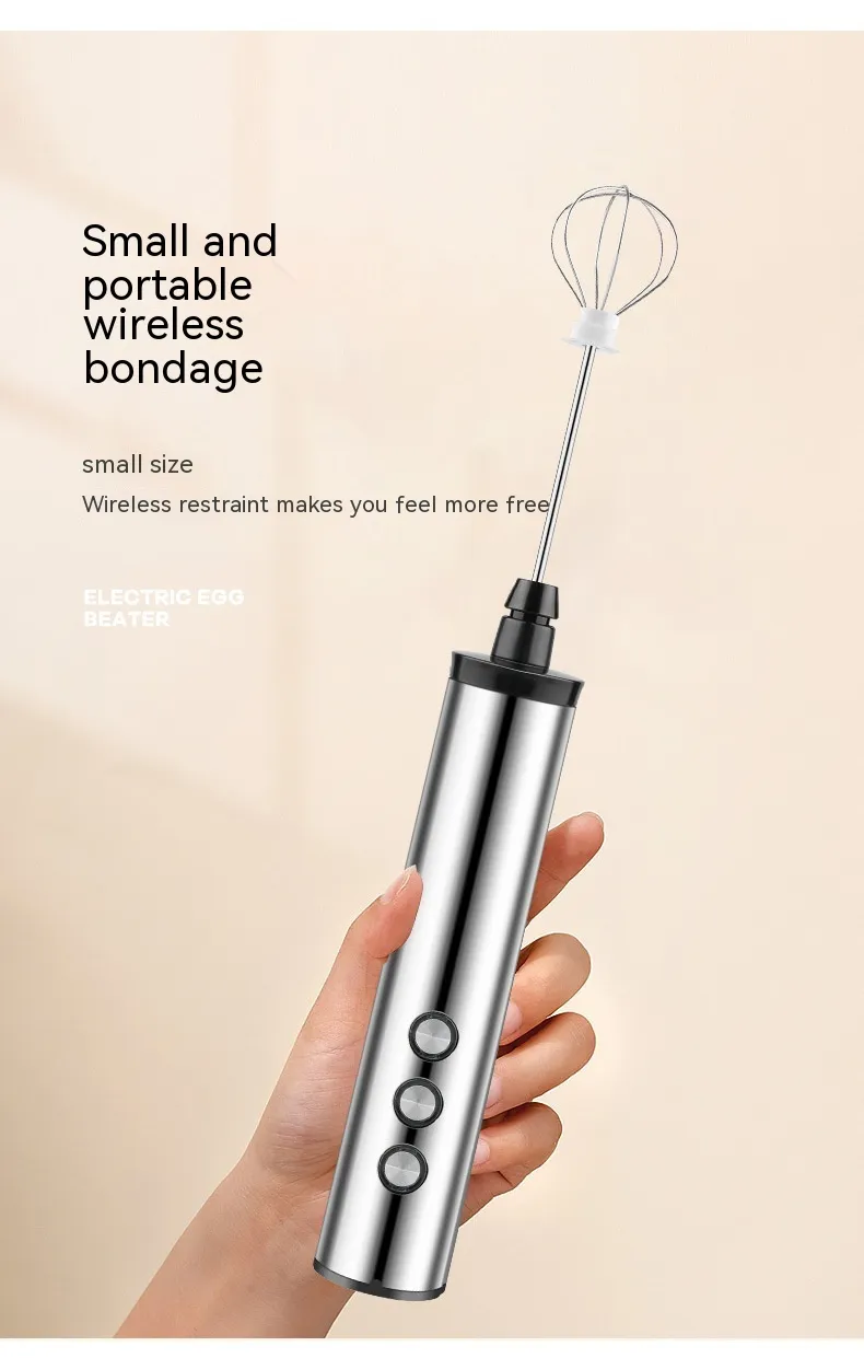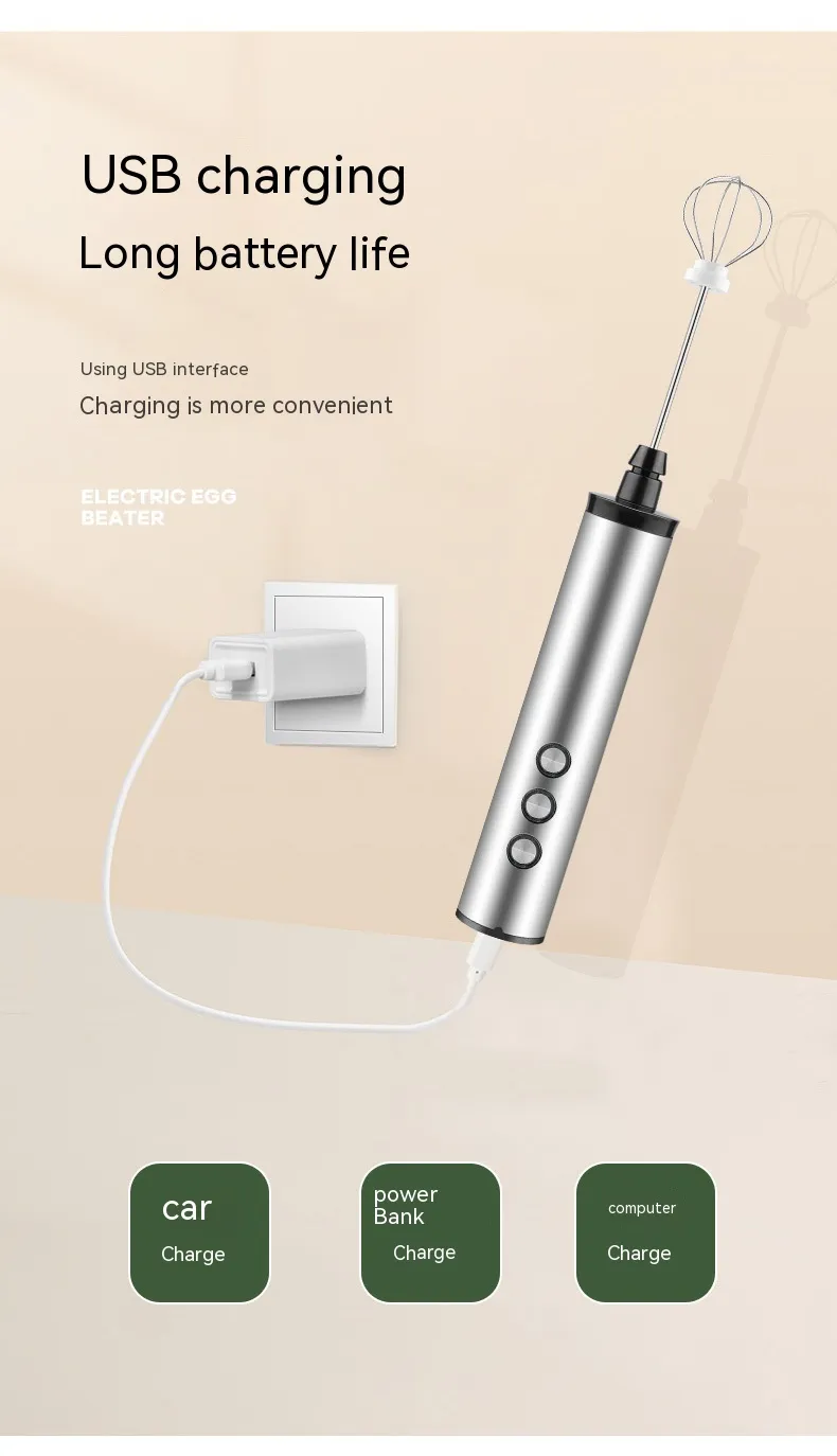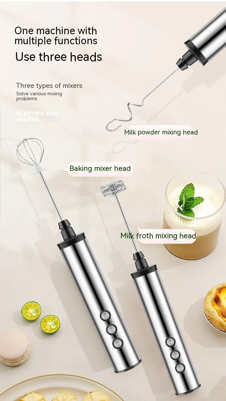 The three whisk heads provide flexibility for different tasks: the balloon whisk for incorporating air into batters and egg whites, the flat whisk for heavier mixtures like pancake batter, and the spiral whisk for frothing milk and mixing light ingredients. The high-speed motor ensures fast and efficient mixing, saving you time while delivering consistent results. Whether you're preparing fluffy scrambled eggs, smooth cake batters, or perfectly whipped cream, the Portable Household Charging Three-head Handheld Egg Beater guarantees a seamless cooking experience.
