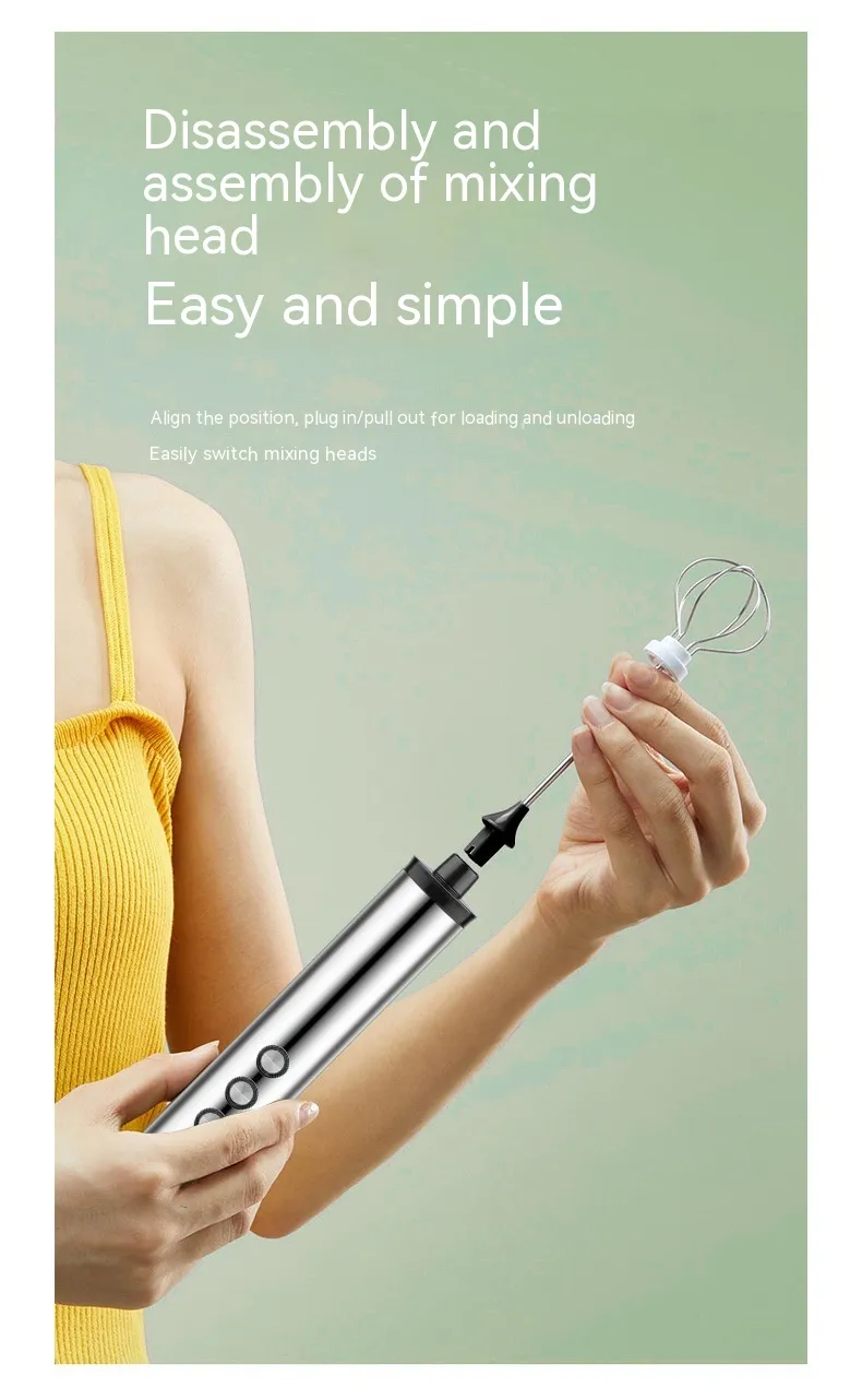 The three whisk heads provide flexibility for different tasks: the balloon whisk for incorporating air into batters and egg whites, the flat whisk for heavier mixtures like pancake batter, and the spiral whisk for frothing milk and mixing light ingredients. The high-speed motor ensures fast and efficient mixing, saving you time while delivering consistent results. Whether you're preparing fluffy scrambled eggs, smooth cake batters, or perfectly whipped cream, the Portable Household Charging Three-head Handheld Egg Beater guarantees a seamless cooking experience.