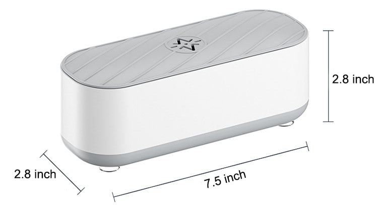 Size of 7.5*2.8*2.8inch (Tank size 5.9*2.1*1.4 inch, capacity 200mL) weight of 6.4oz is super travel friendly. Only 3 minutes to keeps your jewellery to clean, shiny.