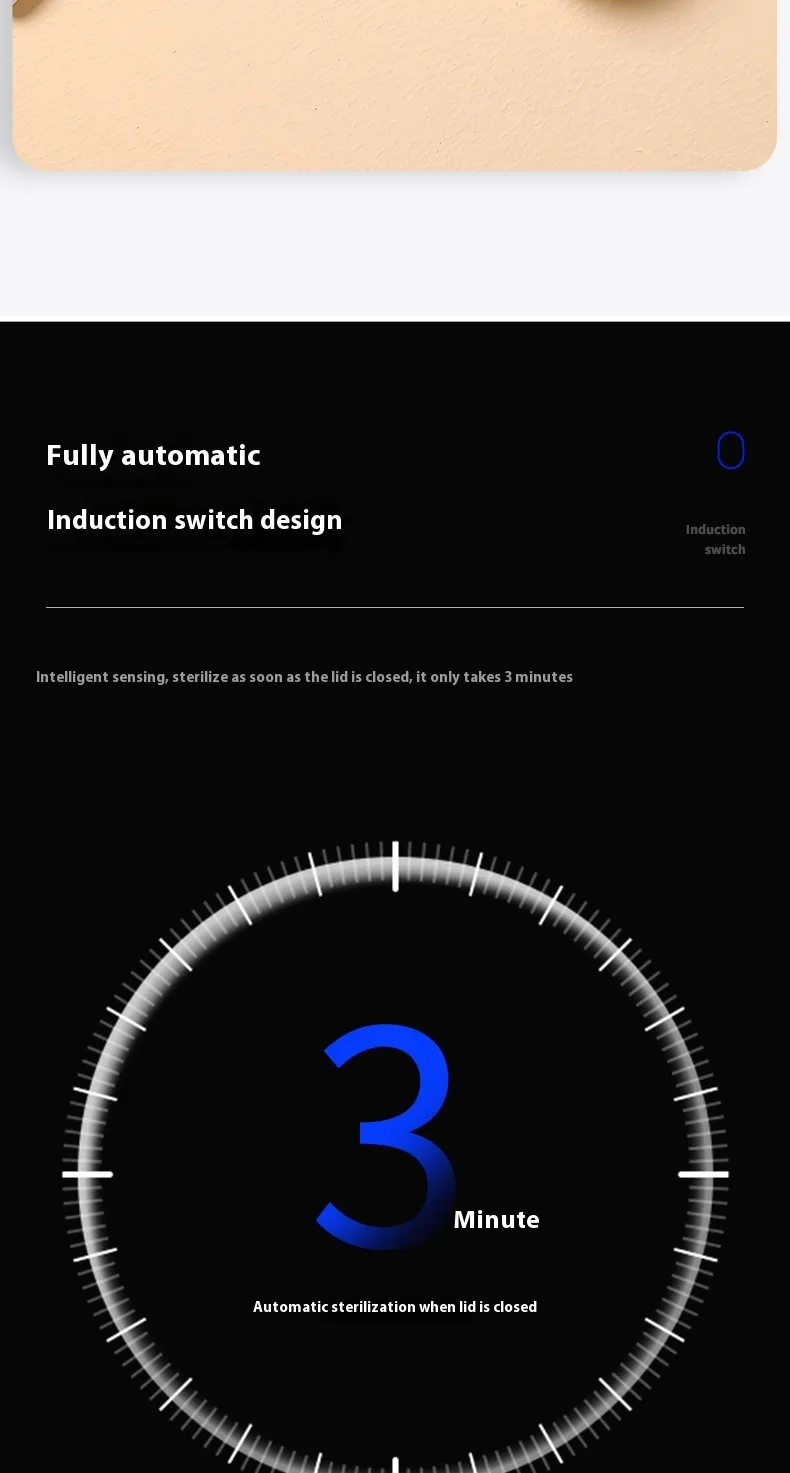 UV-C Sterilization Technology: The disinfector uses powerful UV-C light to kill up to 99.9% of bacteria, viruses, and germs