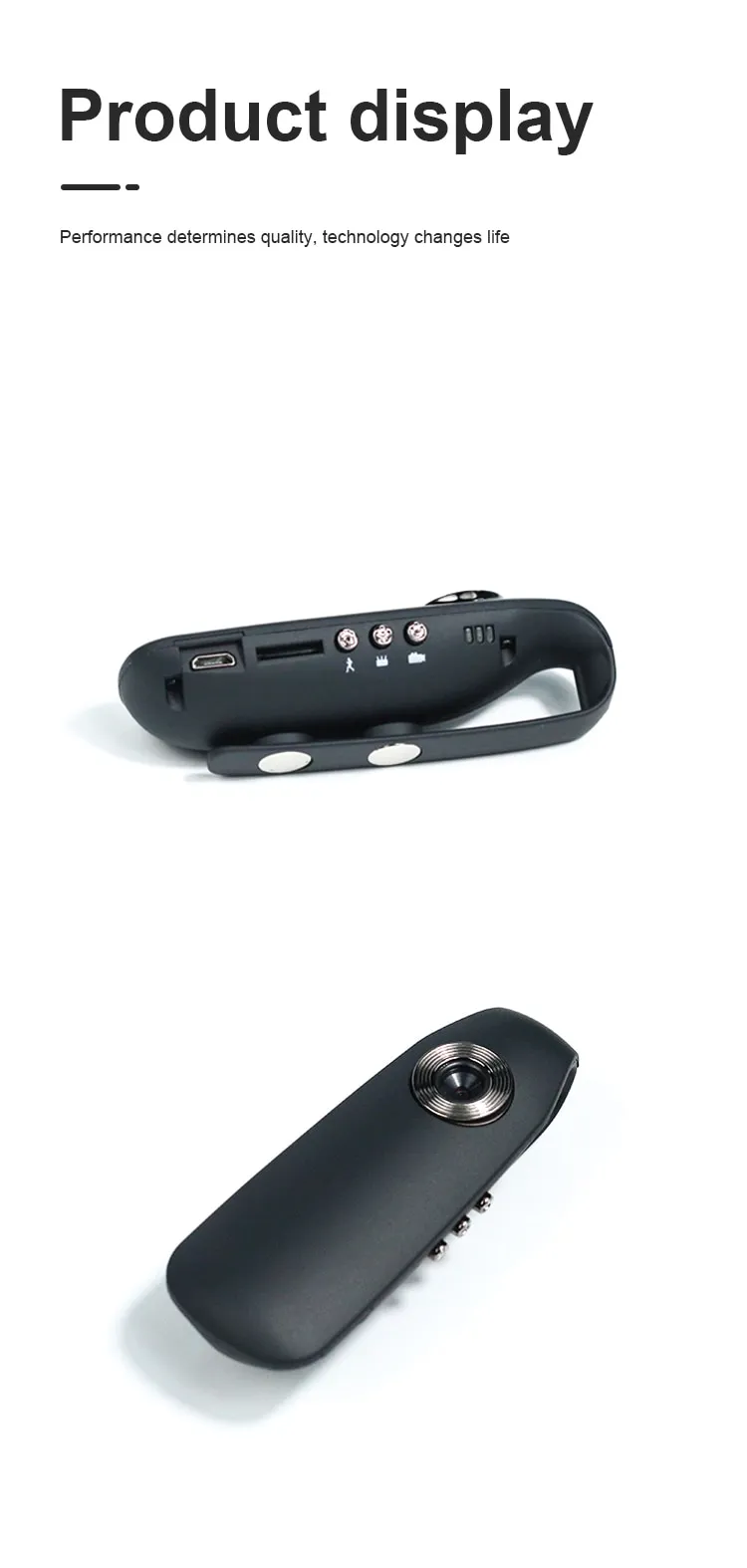 Small and portable: This camera is 3.54 * 1.18 * 0.79 inches in size and has a magnet clip design. You can clip it to your