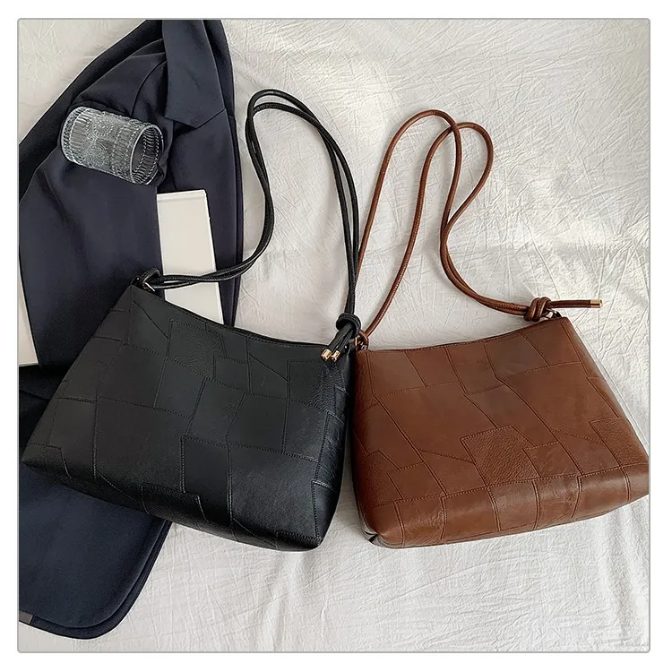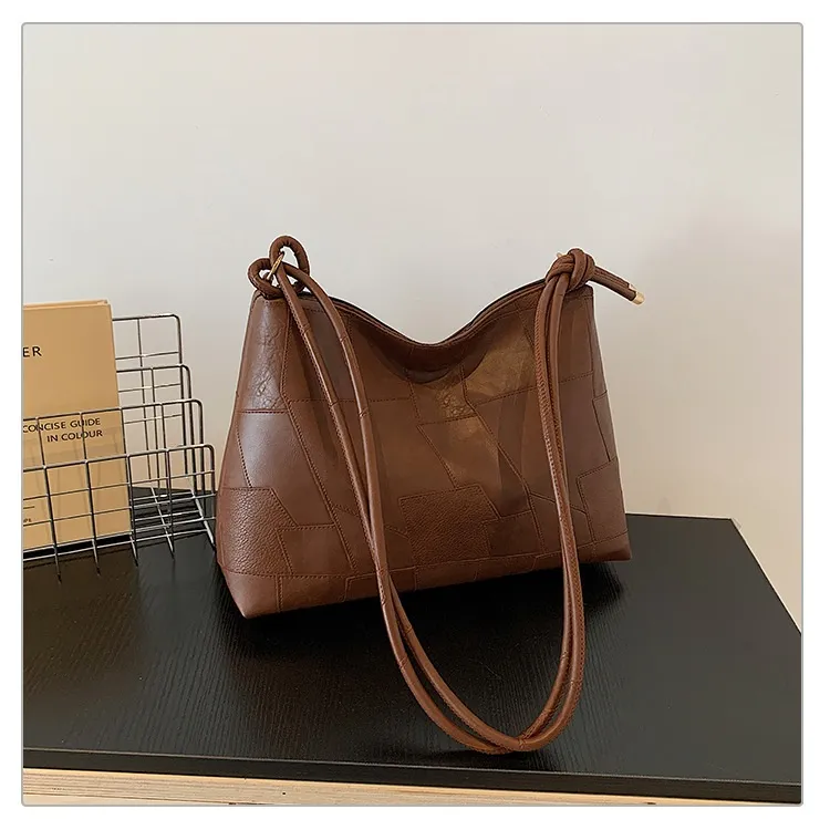 Portable One Shoulder Retro Large Capacity Fashion Solid Color Casual Tote Bag