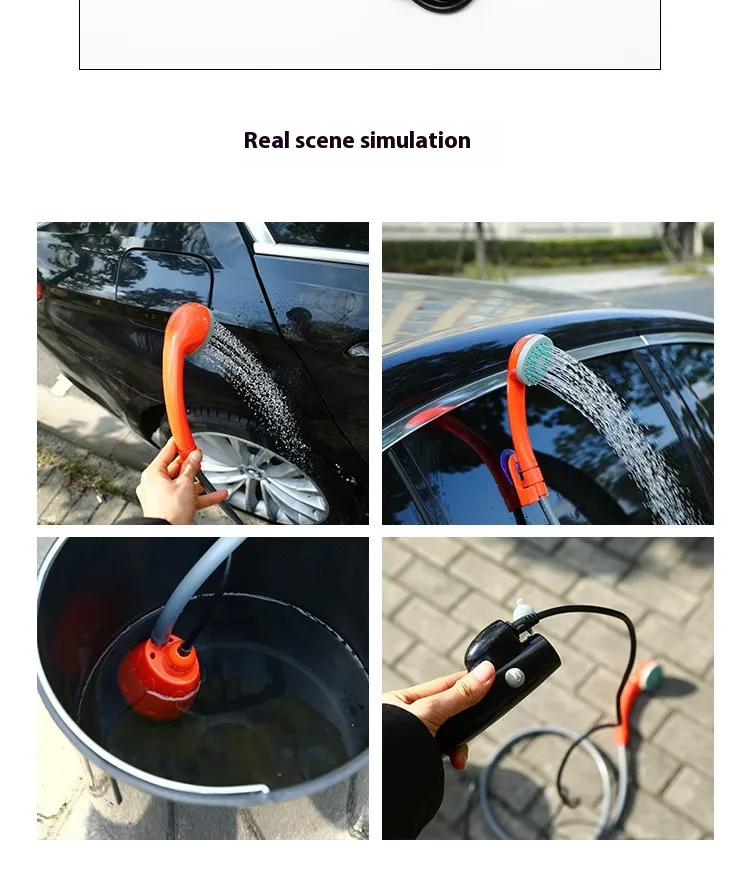 - Setting up the Portable Outdoor USB Wireless Vehicle Shower is quick and simple: just connect the water pump to the shower hose, submerge the pump in water, and switch on the power.