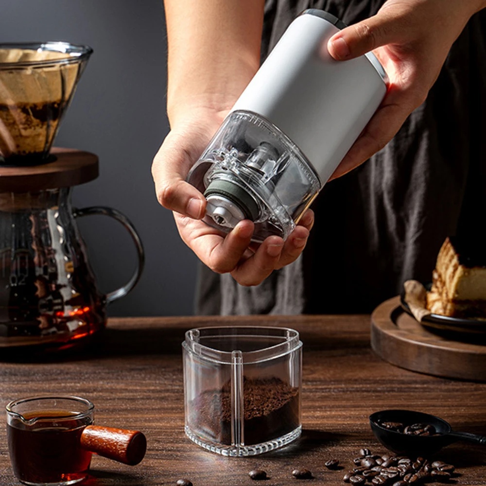Grind fresh coffee beans with ease using our Electric Coffee Grinder. This portable, USB rechargeable grinder is perfect for drip coffee and other kitchen needs.