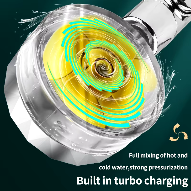 Upgrade your shower experience with the Pressurized Shower Head. Designed with a 360° rotating twin turbo propeller fan, this shower head enhances water pressure while saving water, offering a powerful and efficient shower every time. Its innovative design ensures maximum coverage, transforming your bathroom into a luxurious spa-like environment.