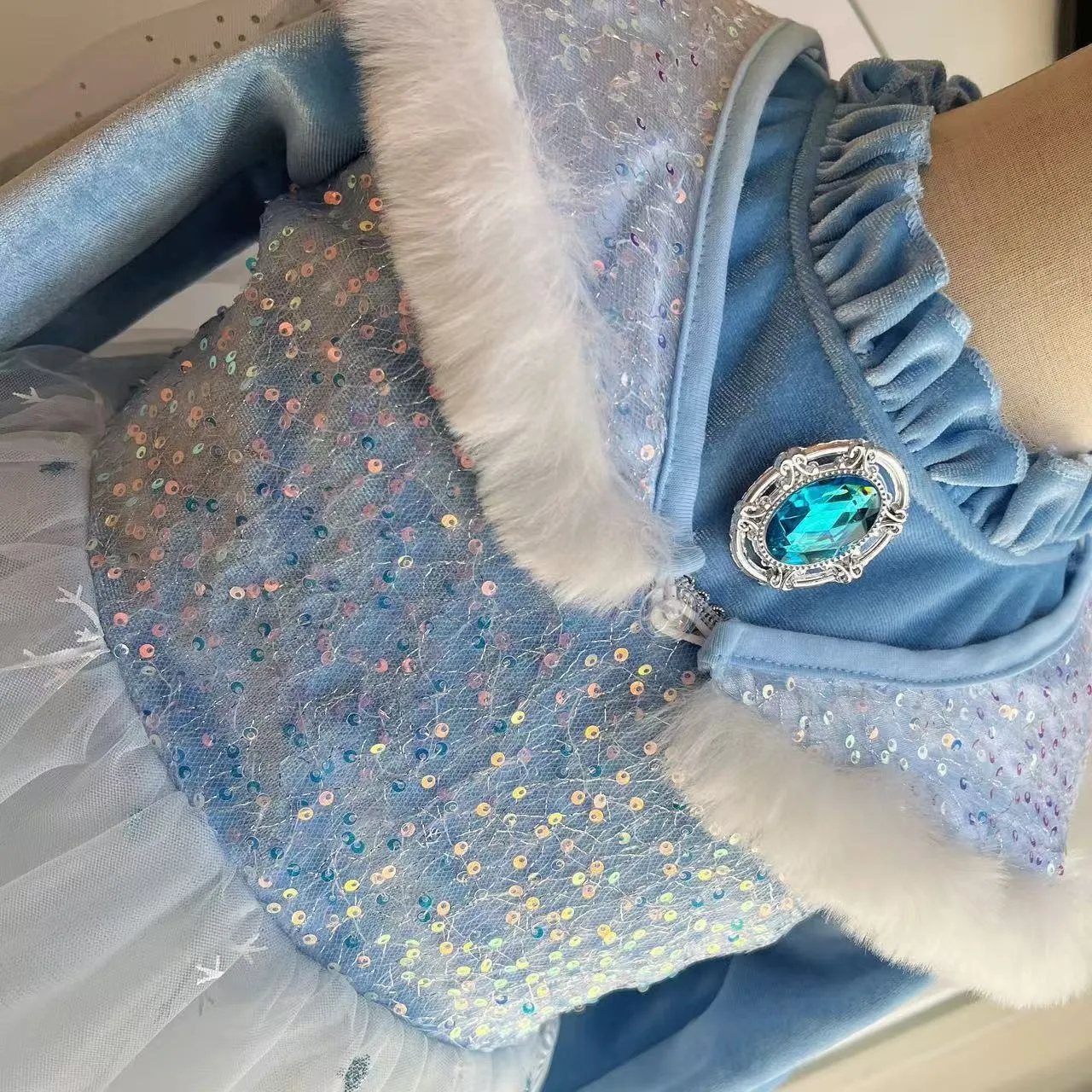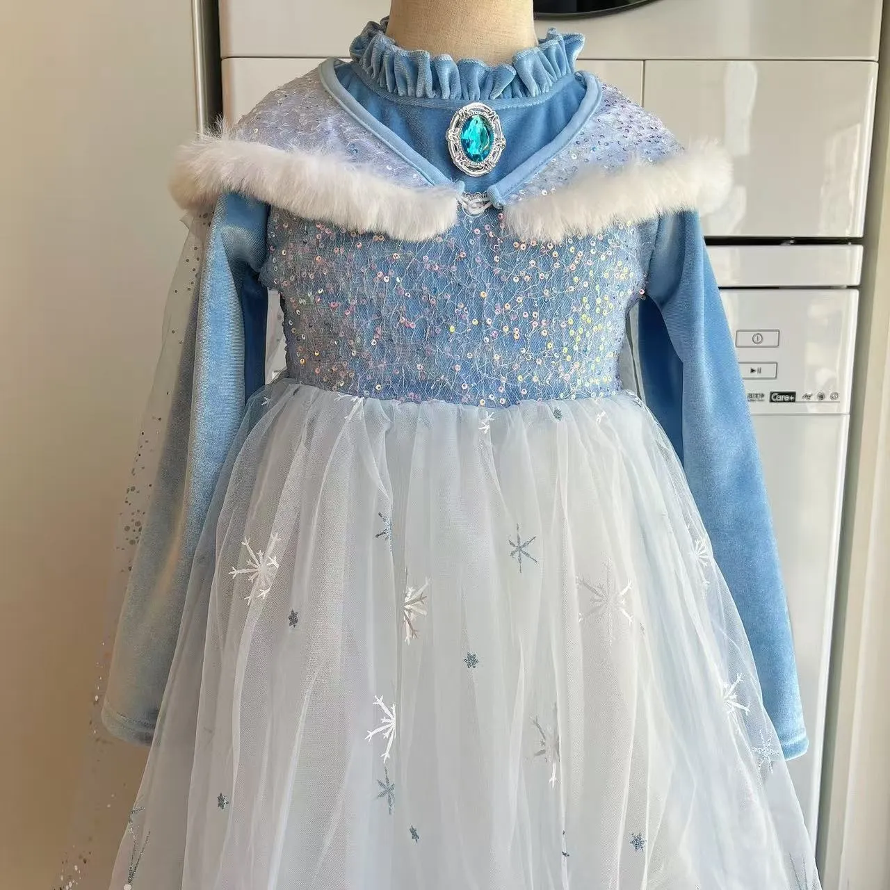 With a beautiful tulle tutu skirt and a warm, comfortable bodice, this dress offers both style and functionality. The princess dress design is perfect for creating magical memories, allowing your child to twirl, dance, and play in comfort all season long.