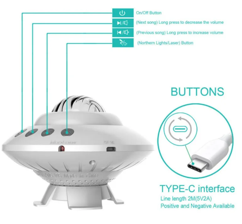 Versatile Light Projections: The projector lamp offers a variety of light projections, including starry skies, ocean waves,