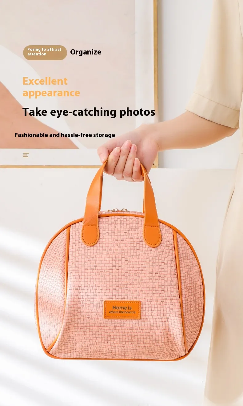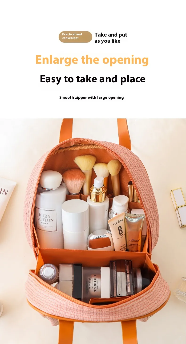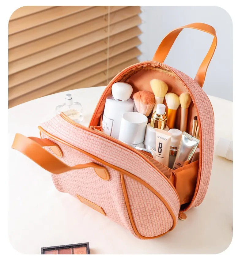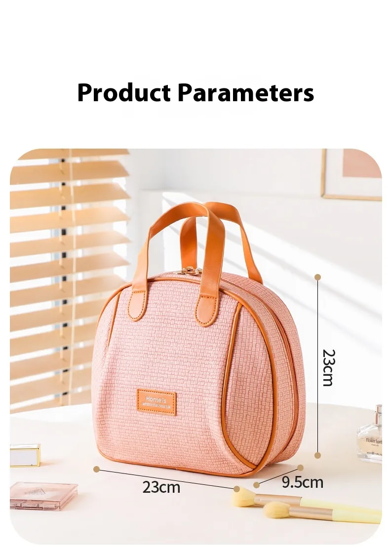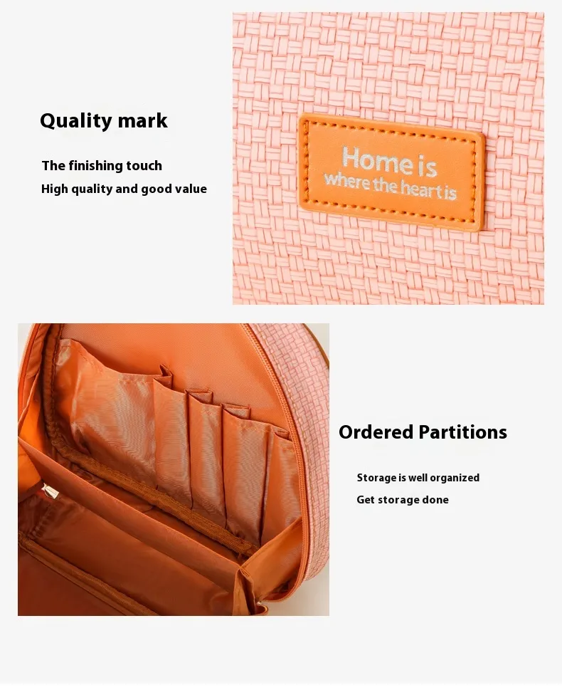 Pu Woven Pattern Cosmetic Capacity Portable Storage Bag Double Zipper