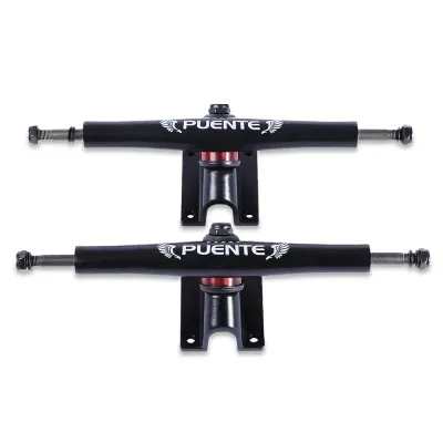 The Puente bracket is built with precision engineering, featuring a reliable kingpin and bushings that offer just the right amount of flex and response, promoting better balance and control on various surfaces. The bracket’s polished finish and minimalist design provide an aesthetic that suits any deck, while the lightweight construction helps reduce the overall board weight, improving agility and maneuverability.